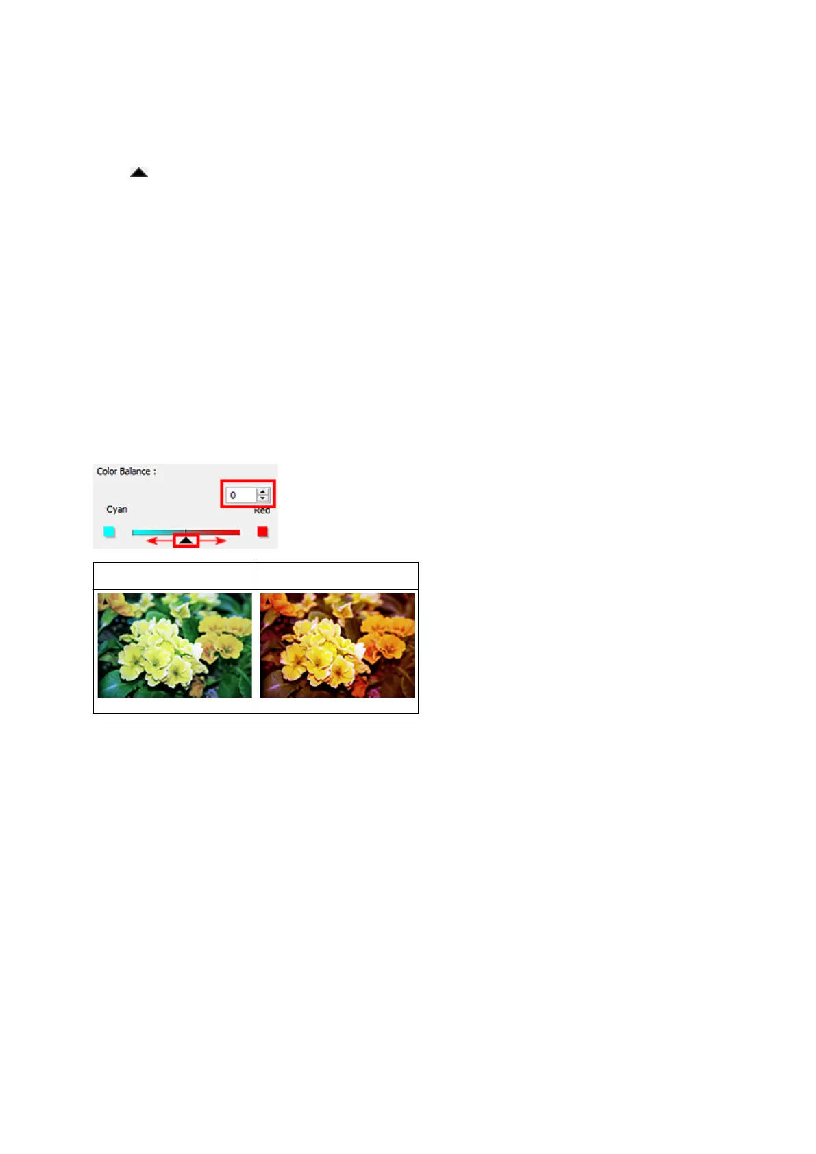 Move (Slider) under Color Balance to the left or right to emphasize the corresponding color.