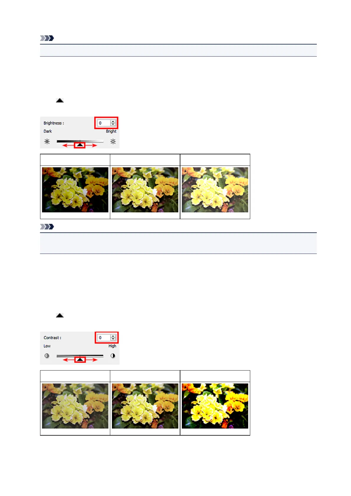 • Highlights may be lost if you brighten the image too much, and shadows may be lost if you darken