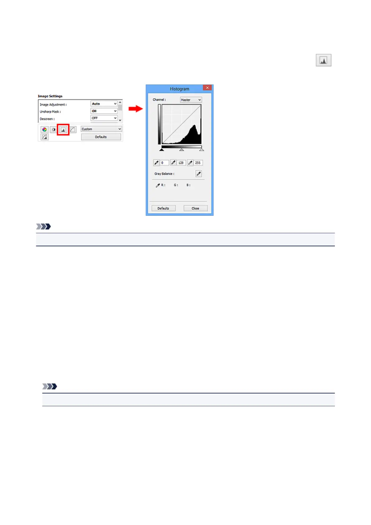 (Histogram) in ScanGear (scanner driver)'s Advanced Mode tab.