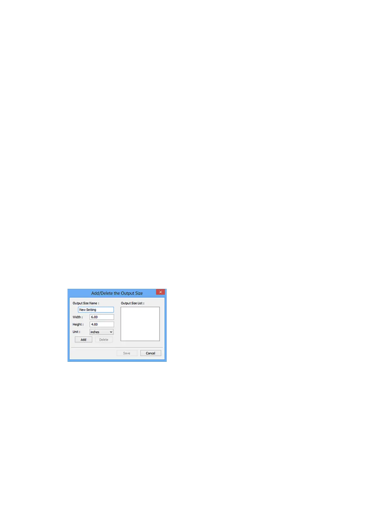 them at one time. Saved items will be registered to the Output Size list and can be selected,