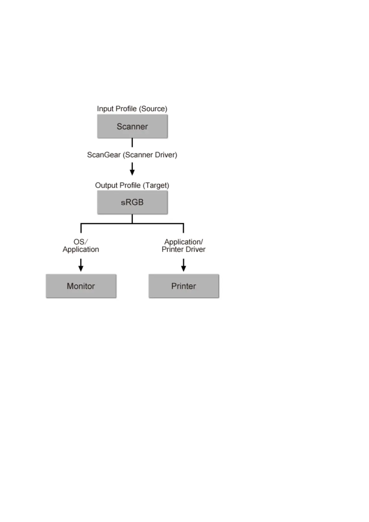 the monitor display, and the color printout. On your scanner or printer, the color tones are adjusted as shown