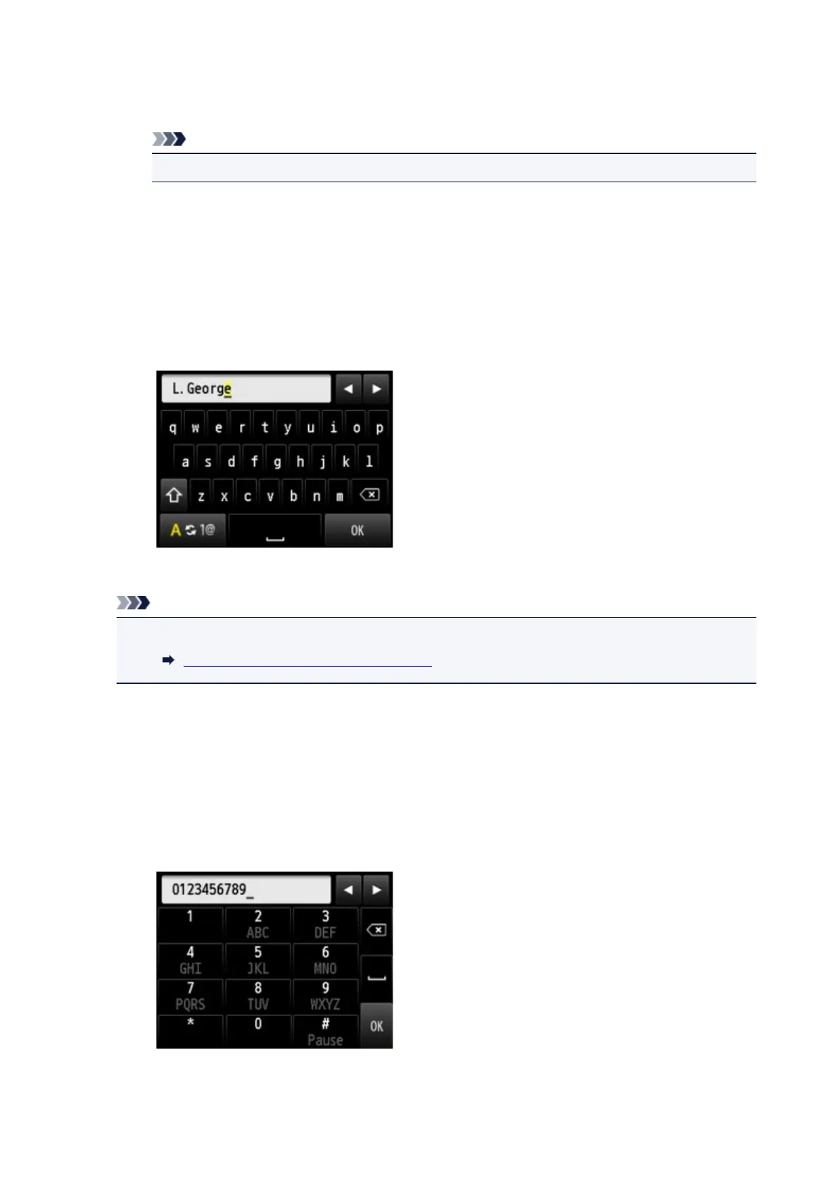 If you select a fax/telephone number on From outgoing call log or From incoming call log, the fax/