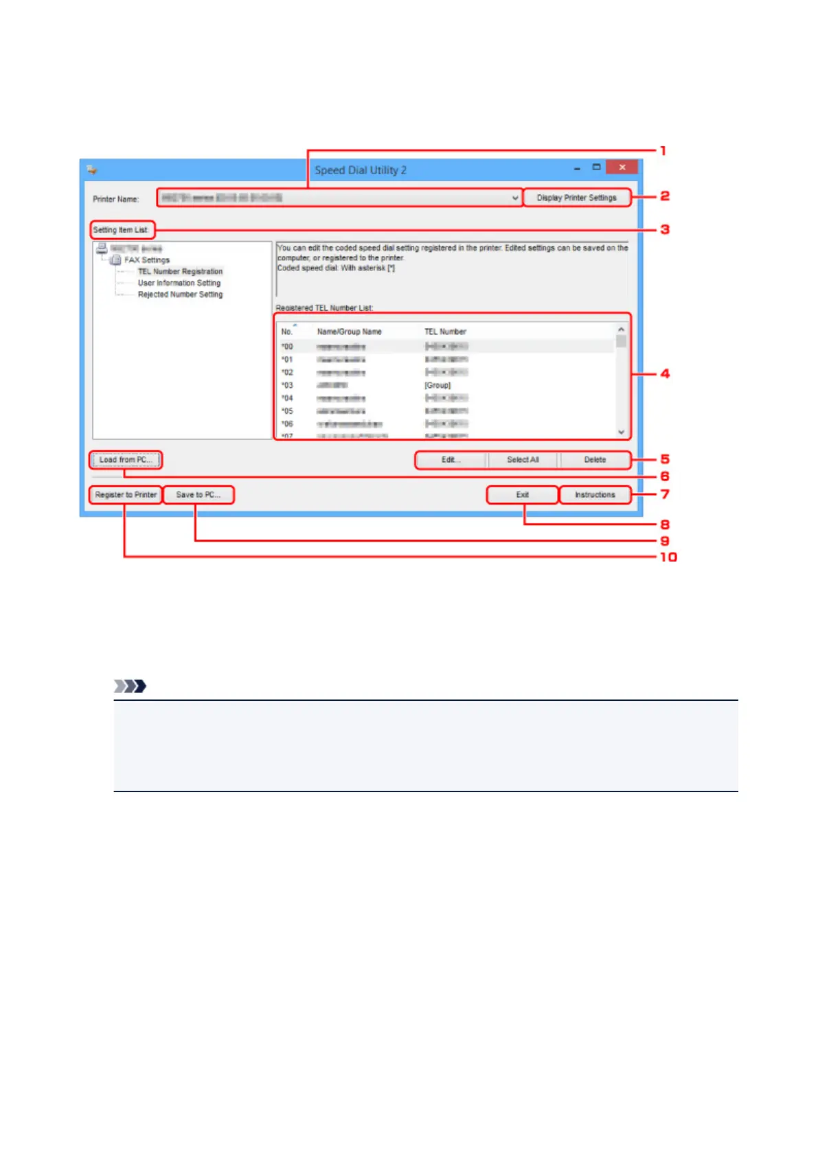 Loads the telephone directory registered on the printer that selected for Printer Name: into Speed Dial