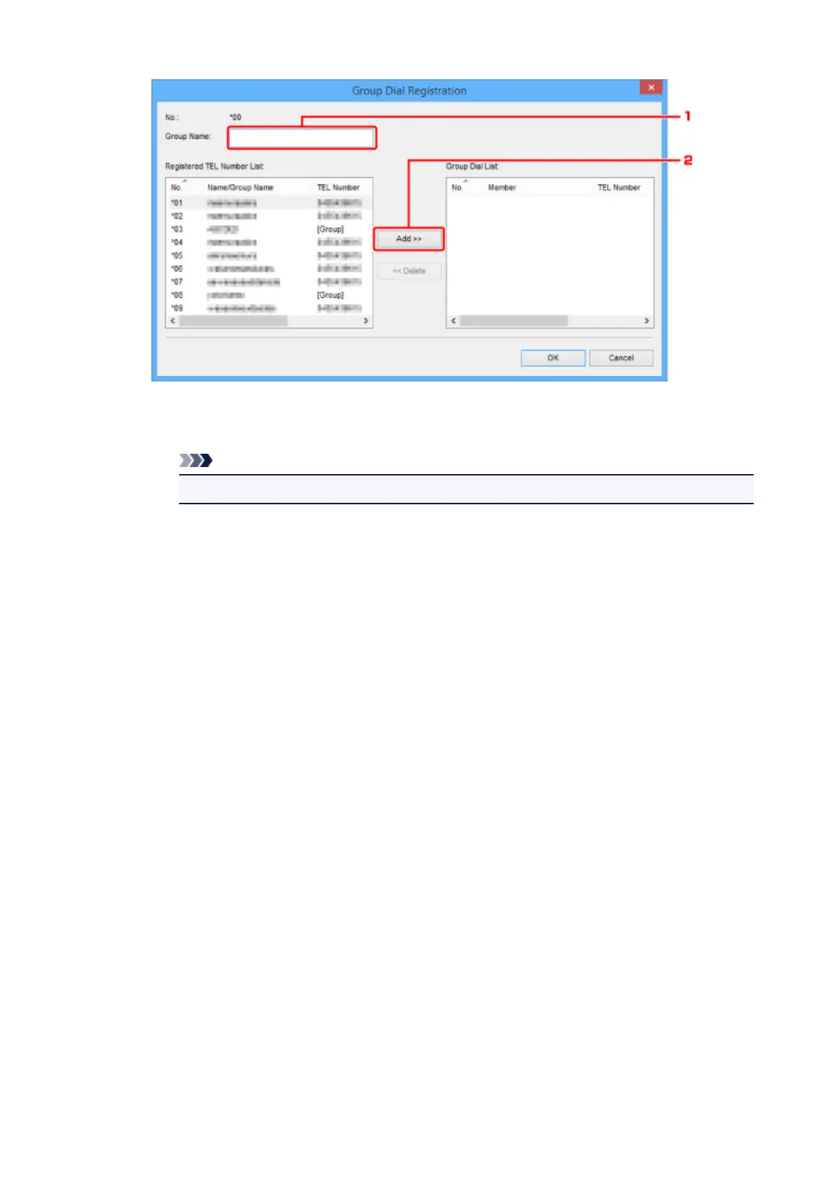 Select a code you want to add to group dial, and then click Add >>.