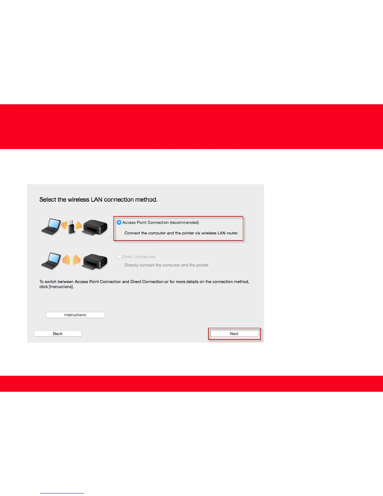 Follow on-screen instructions. Select Access Point Connection and click Next on the following screen.