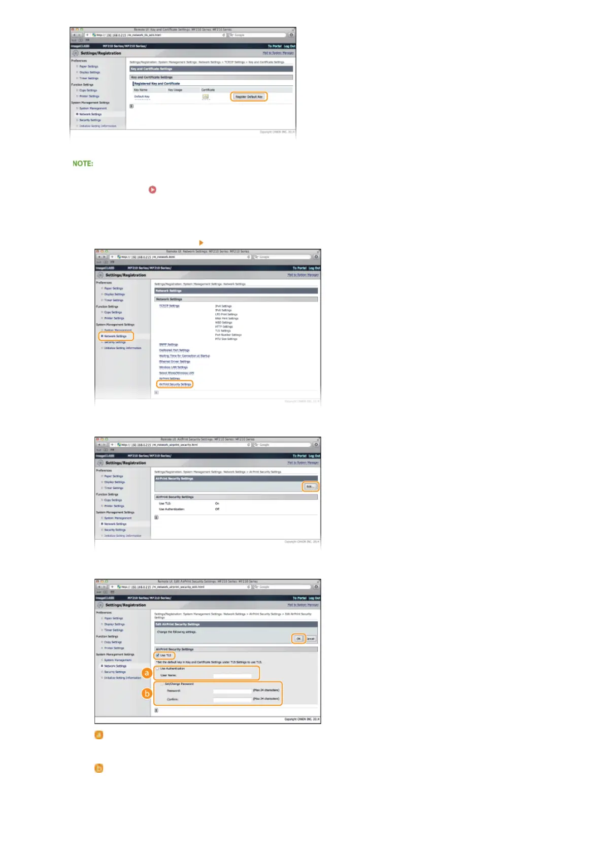 Click [Network Settings] [AirPrint Security Settings].