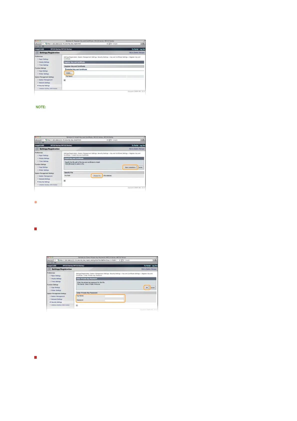 Enter up to 24 alphanumeric characters for the password of the private key set for the file to be registered.