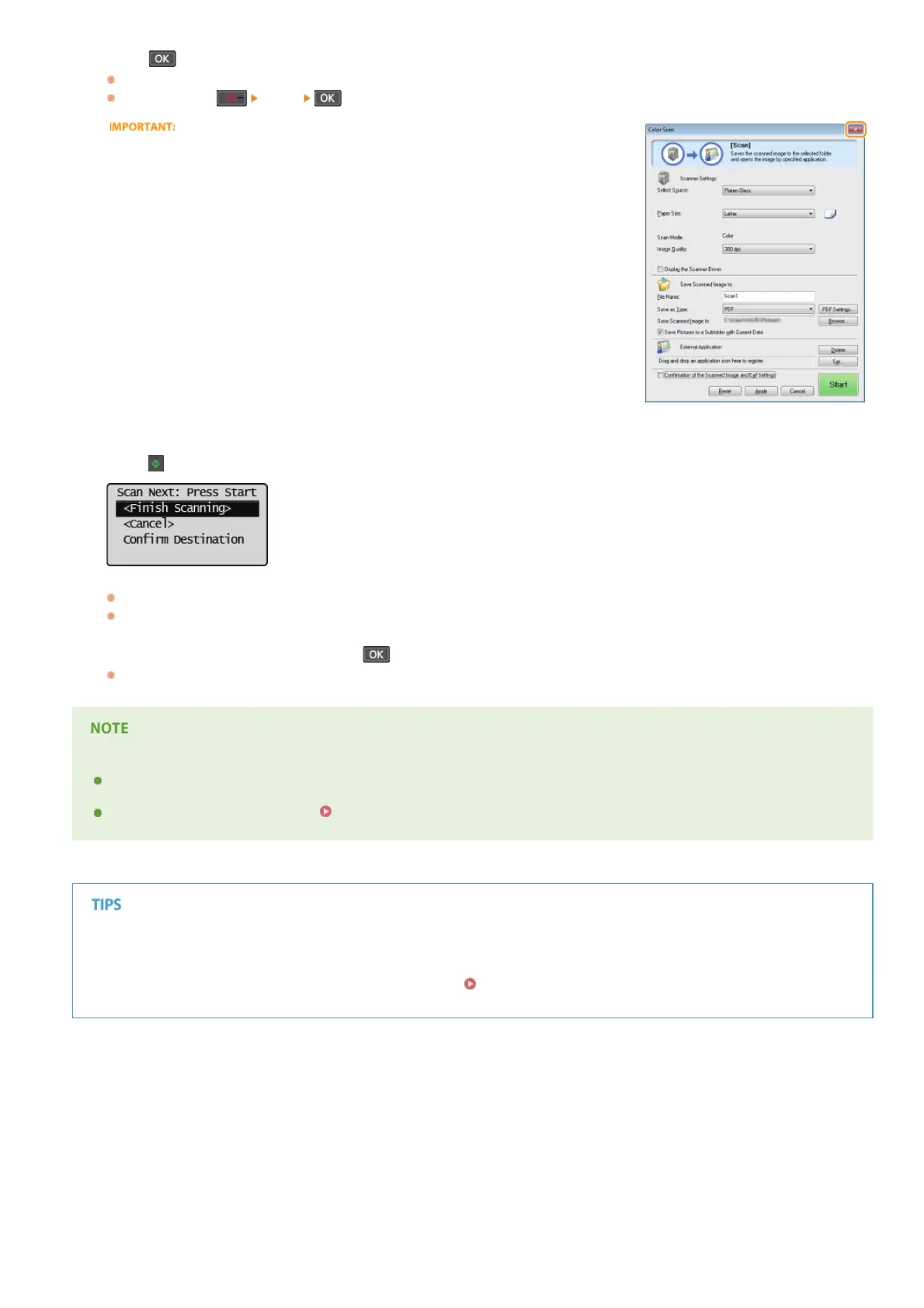 scanned documents will be saved, specifying these settings each time you scan can be troublesome. Register these settings in a