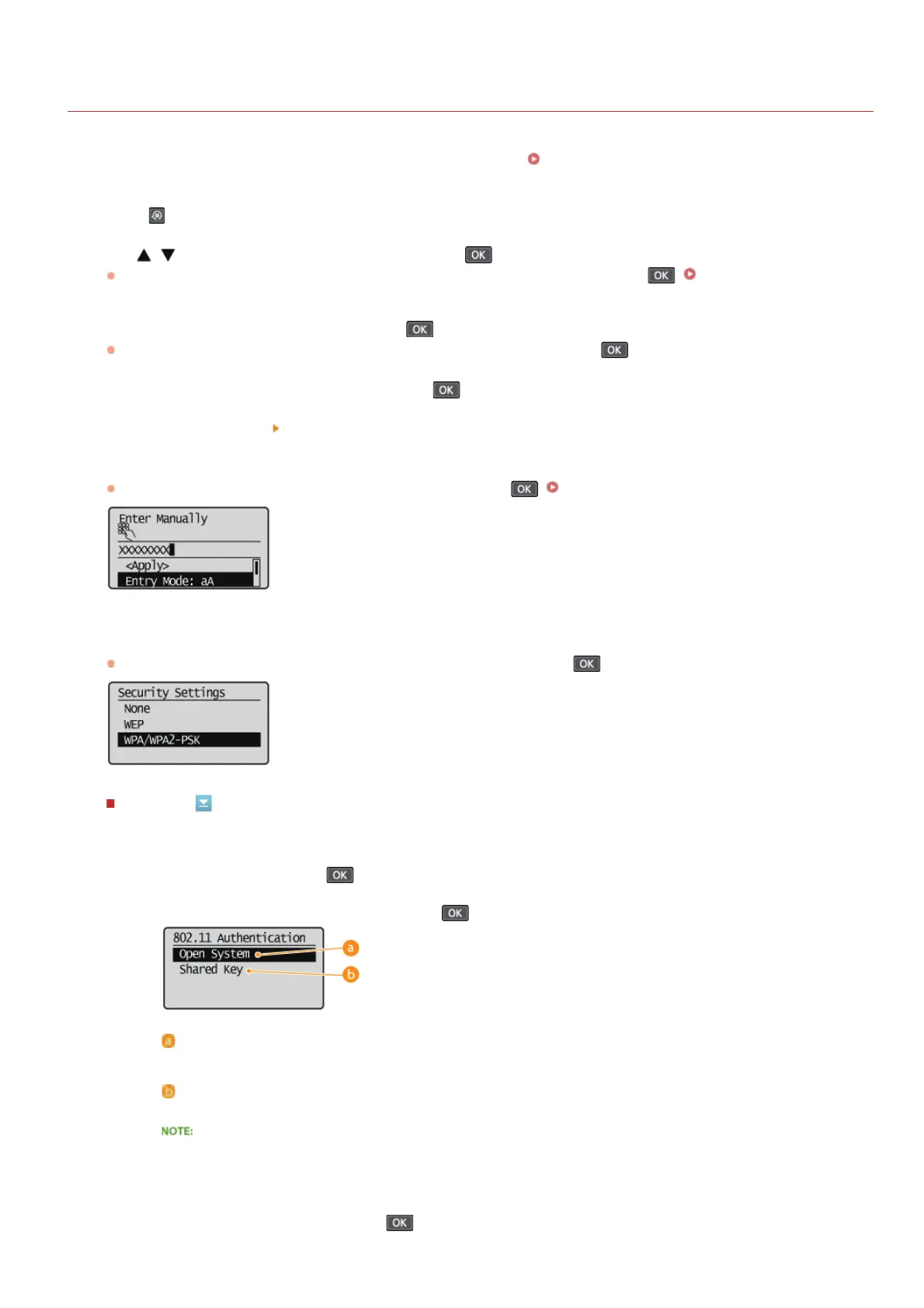 If you want to specify the security settings in detail or cannot establish the wireless connection using the other procedures, manually