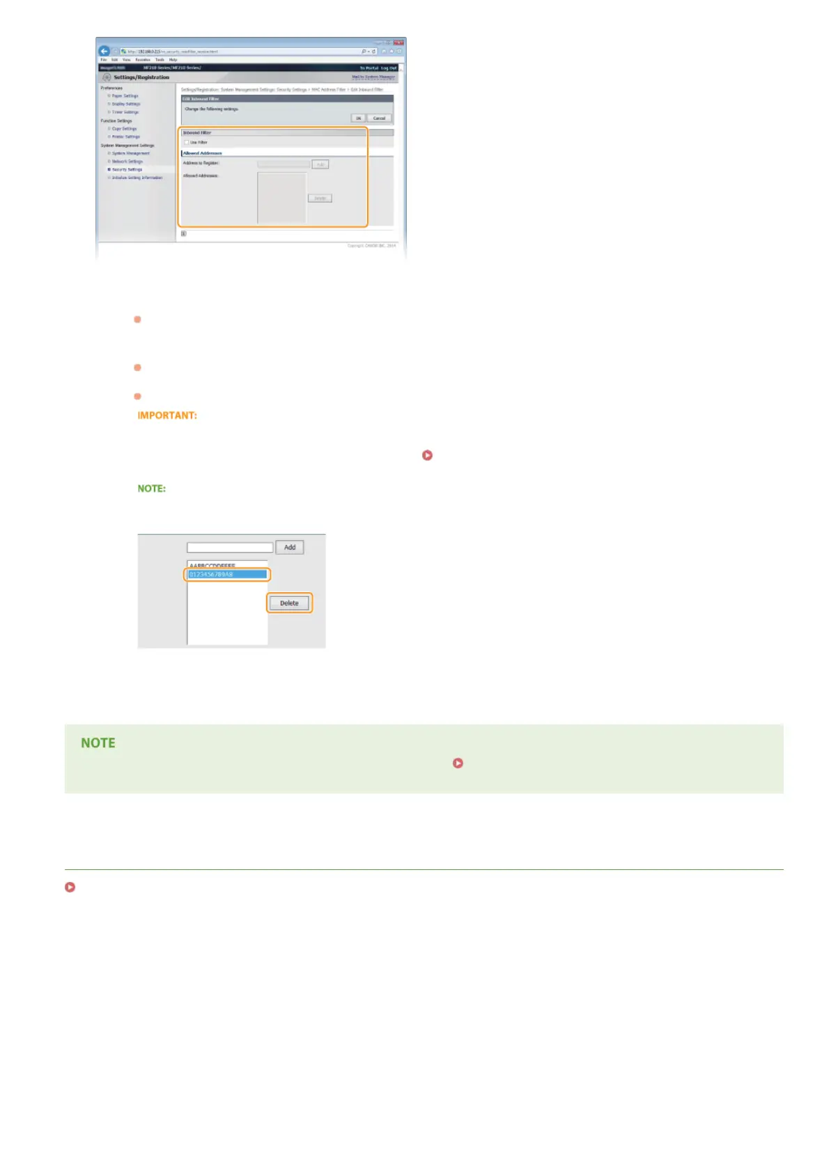 If MAC addresses are incorrectly entered, you may become unable to access the machine from the Remote UI, in which