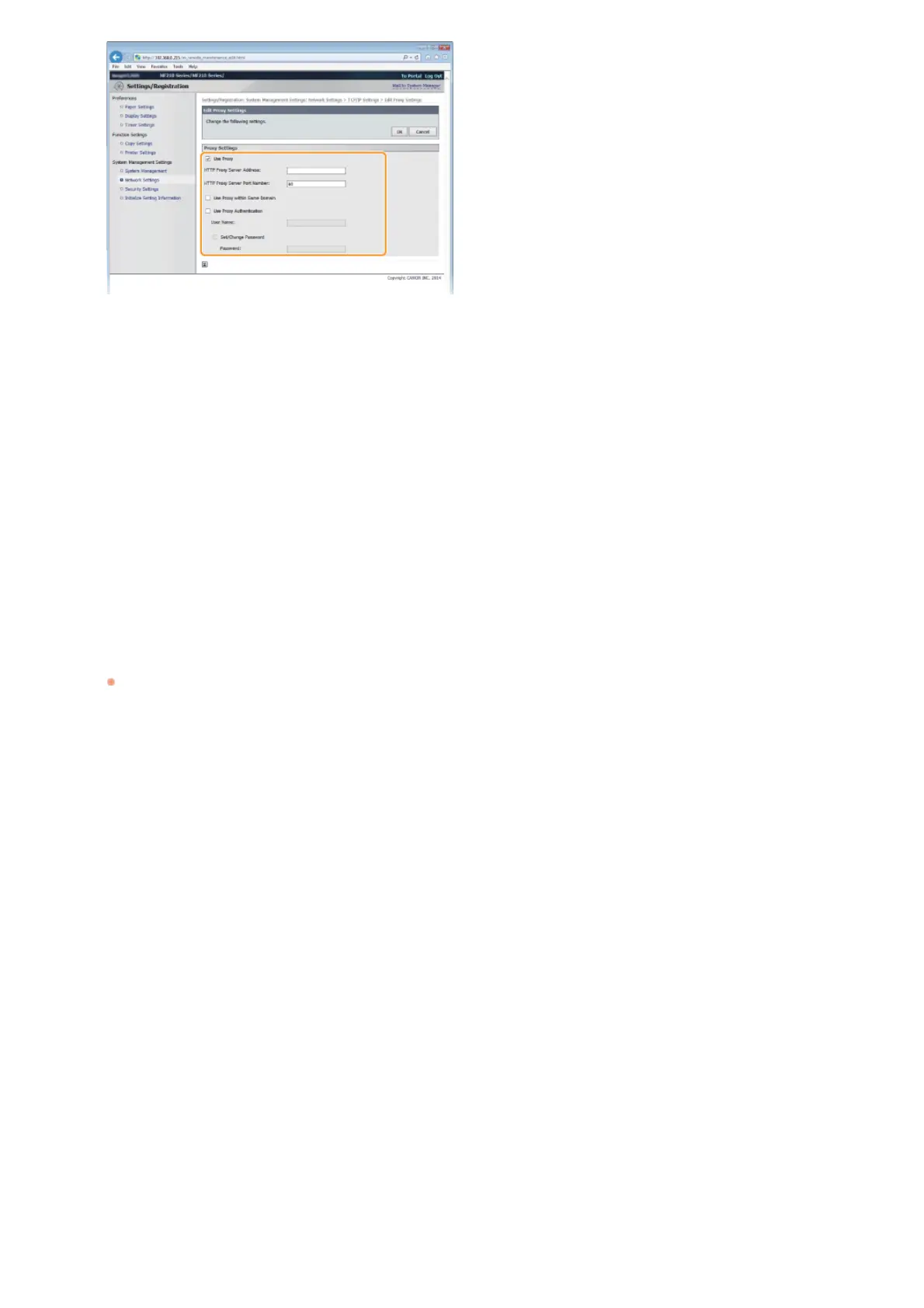 To enable authentication by the proxy server, select the check box and enter up to 24 alphanumeric characters for the user name
