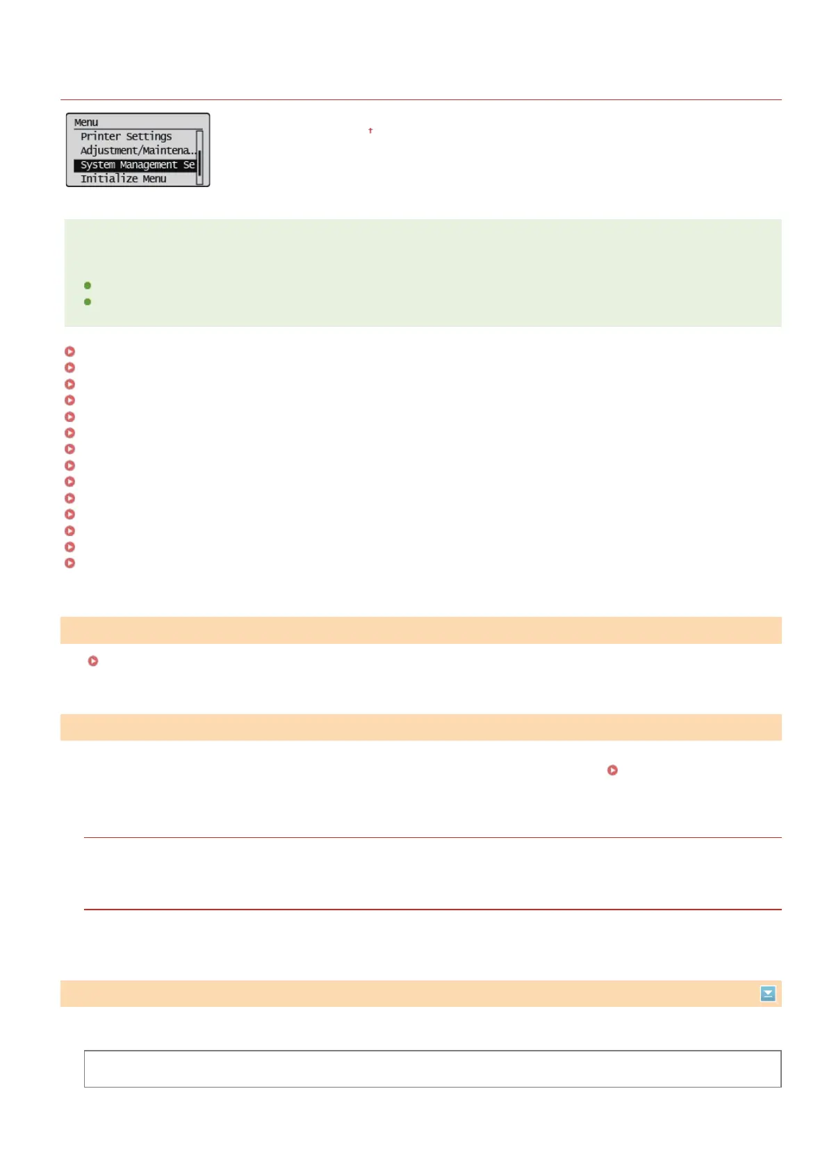 All the settings about System Management Settings are listed with short descriptions. Default settings