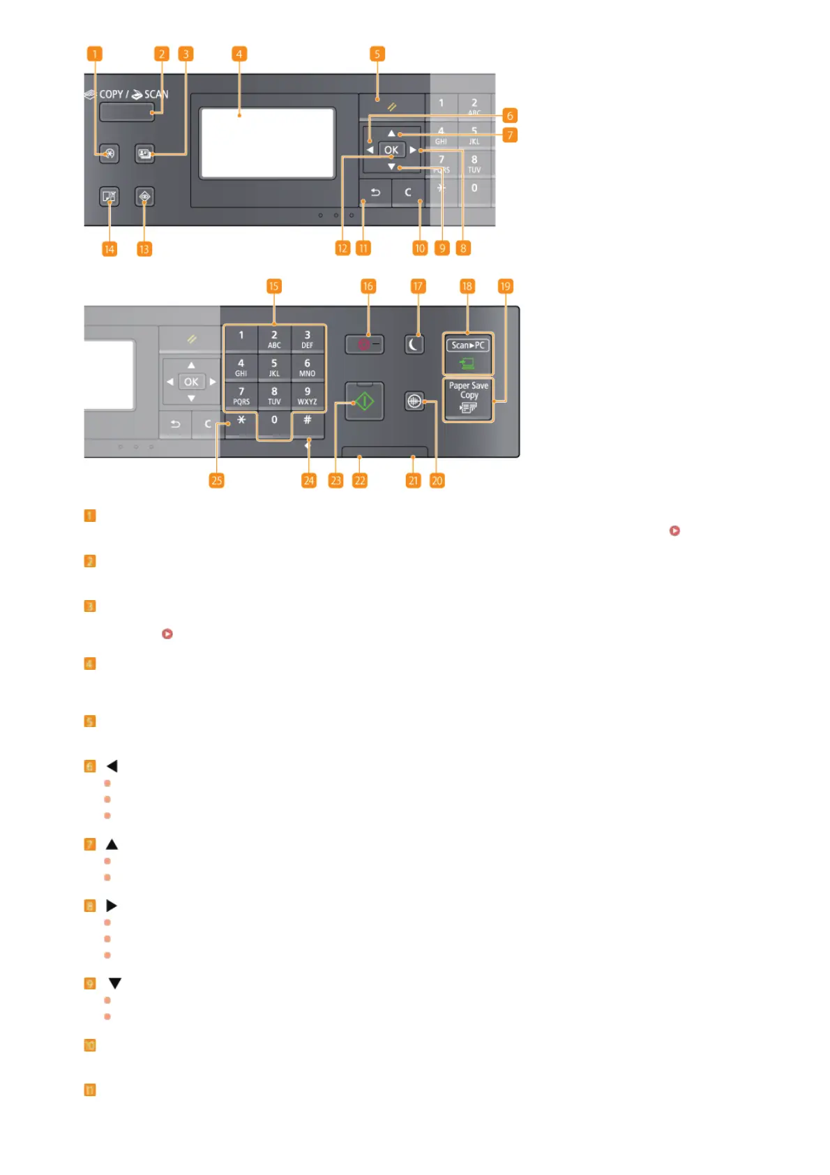 Press to switch the mode to copy or scan.