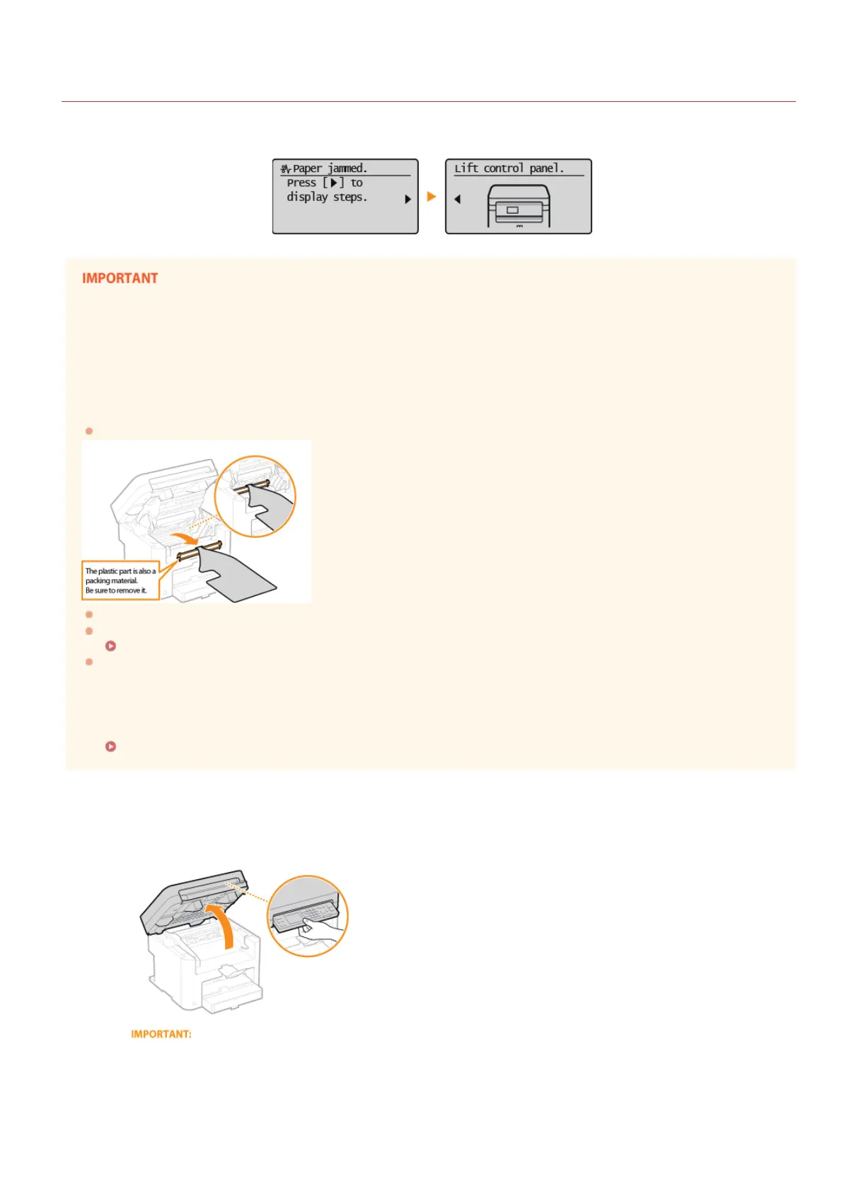 If a paper jams, <Paper jammed.> is displayed on the screen. Press <Next> to display simple solutions. If it is difficult to understand
