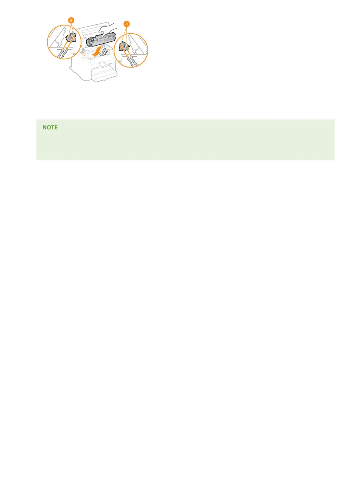 Make sure that the toner cartridge is inserted properly. Forcing it closed may cause damage.
