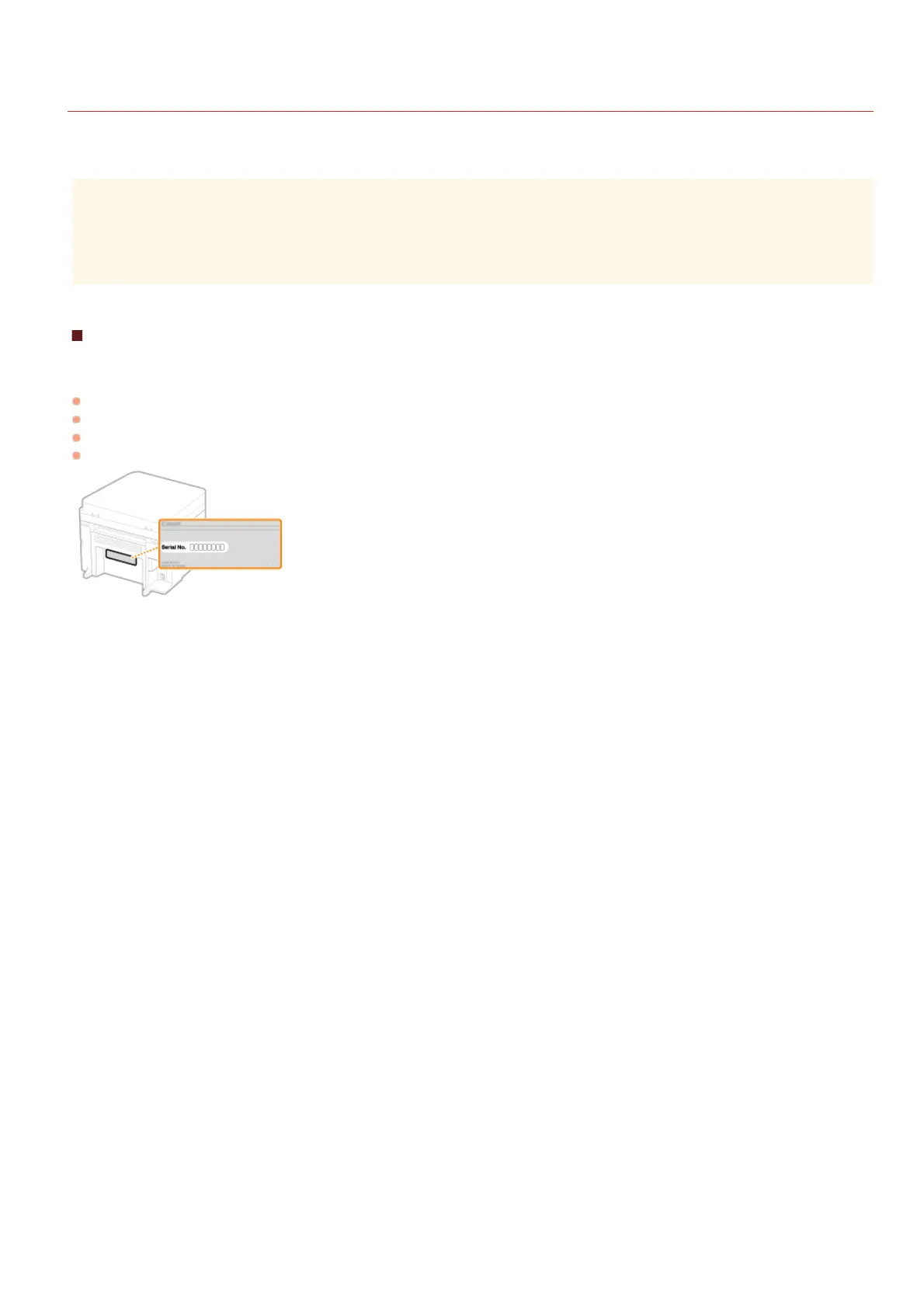 Serial number (eight alphanumeric characters long, found on the label on the back side of the machine)