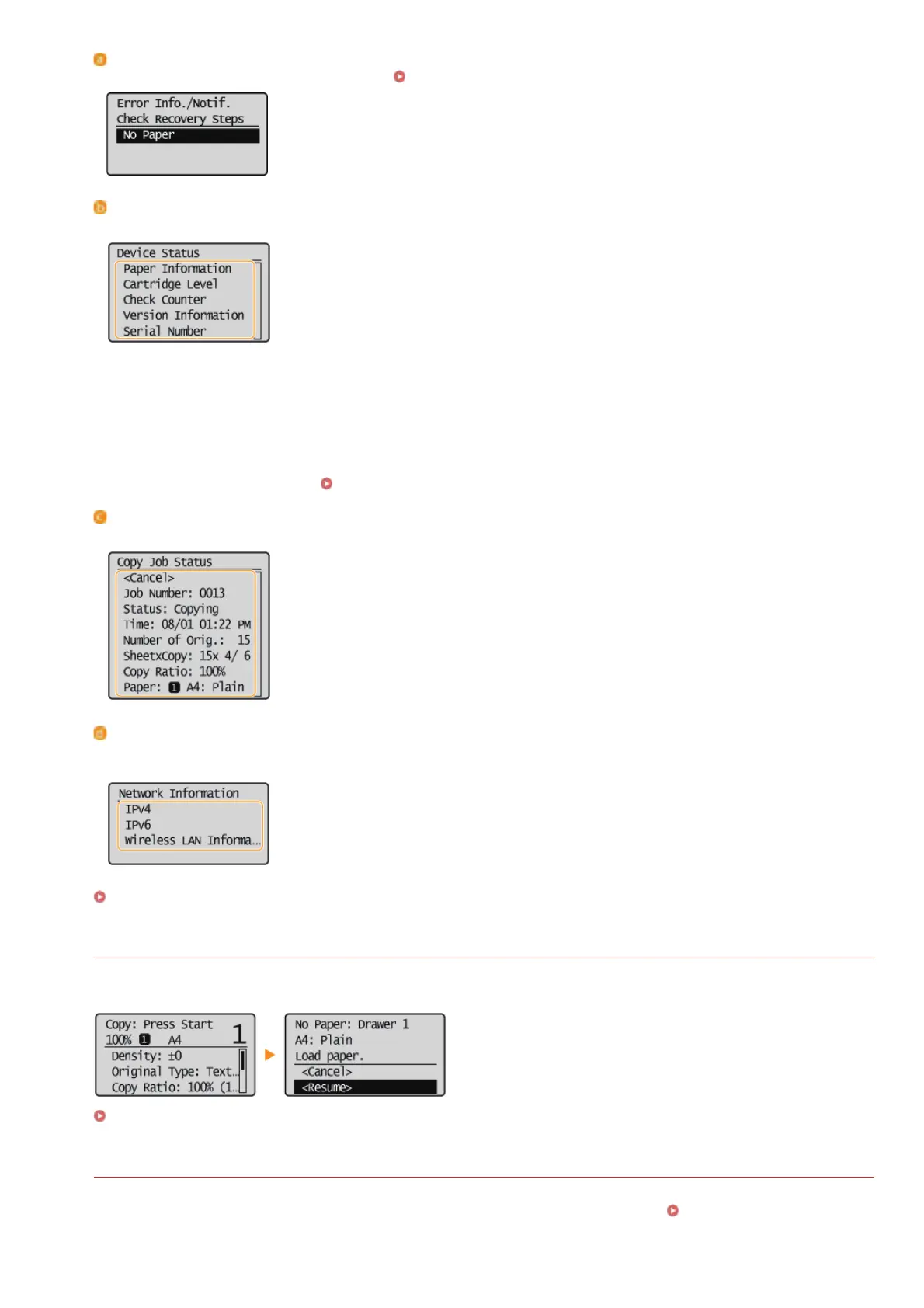 Displays the status of the machine, such as the amount of paper or toner remaining.