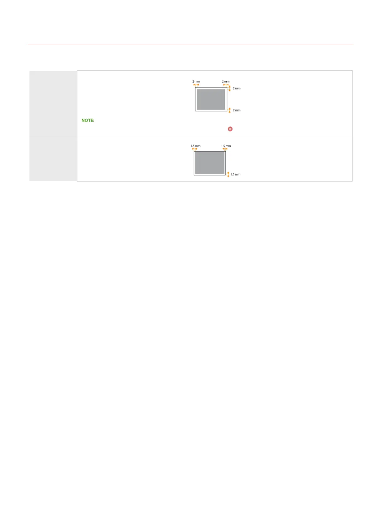 The shaded areas in the table below indicate the scan area of the document. Make sure that text and images in your documents fit