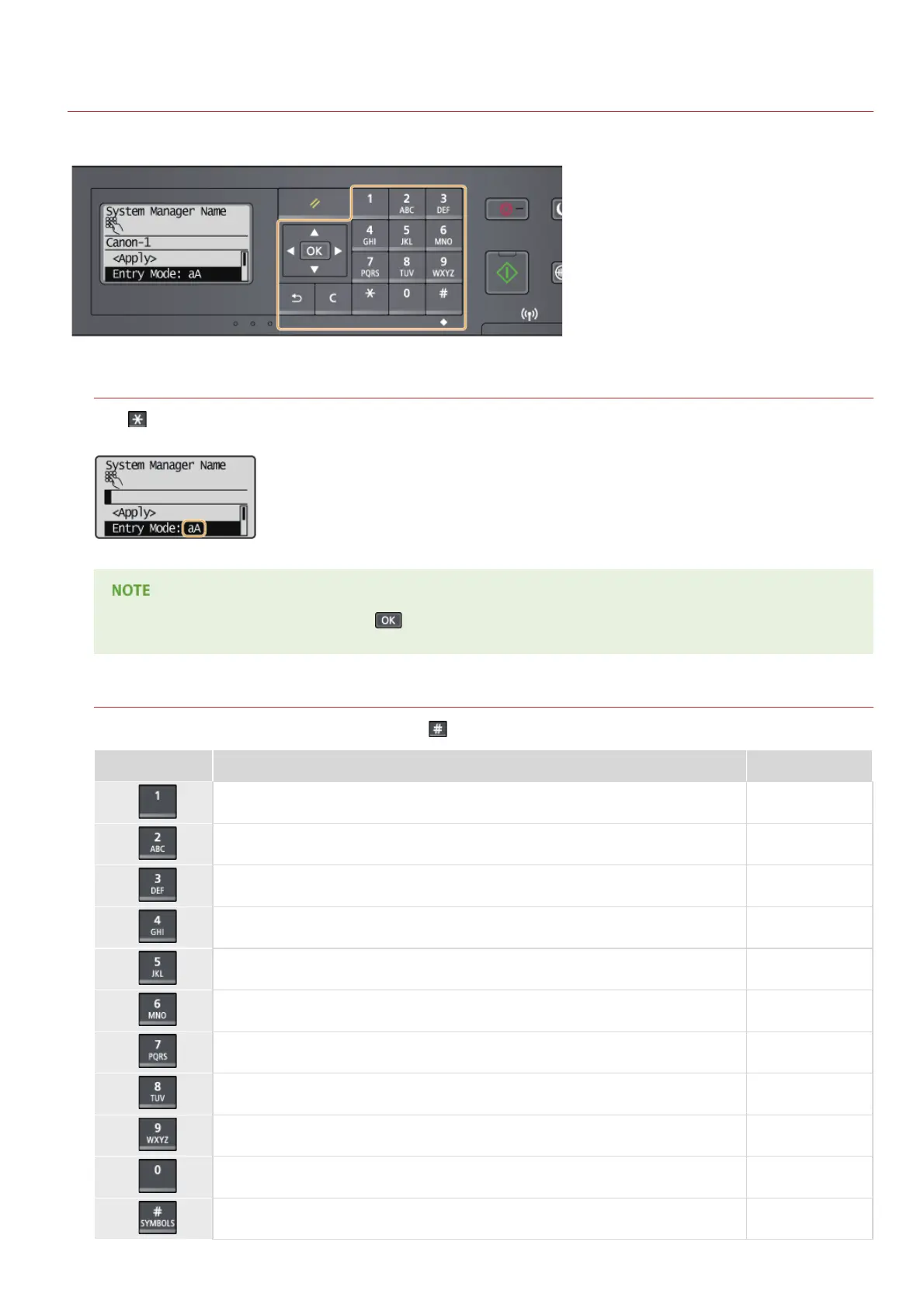 Press to switch the type of text that is entered. The currently selected type of text is indicated by the "aA" or "12" of <Entry