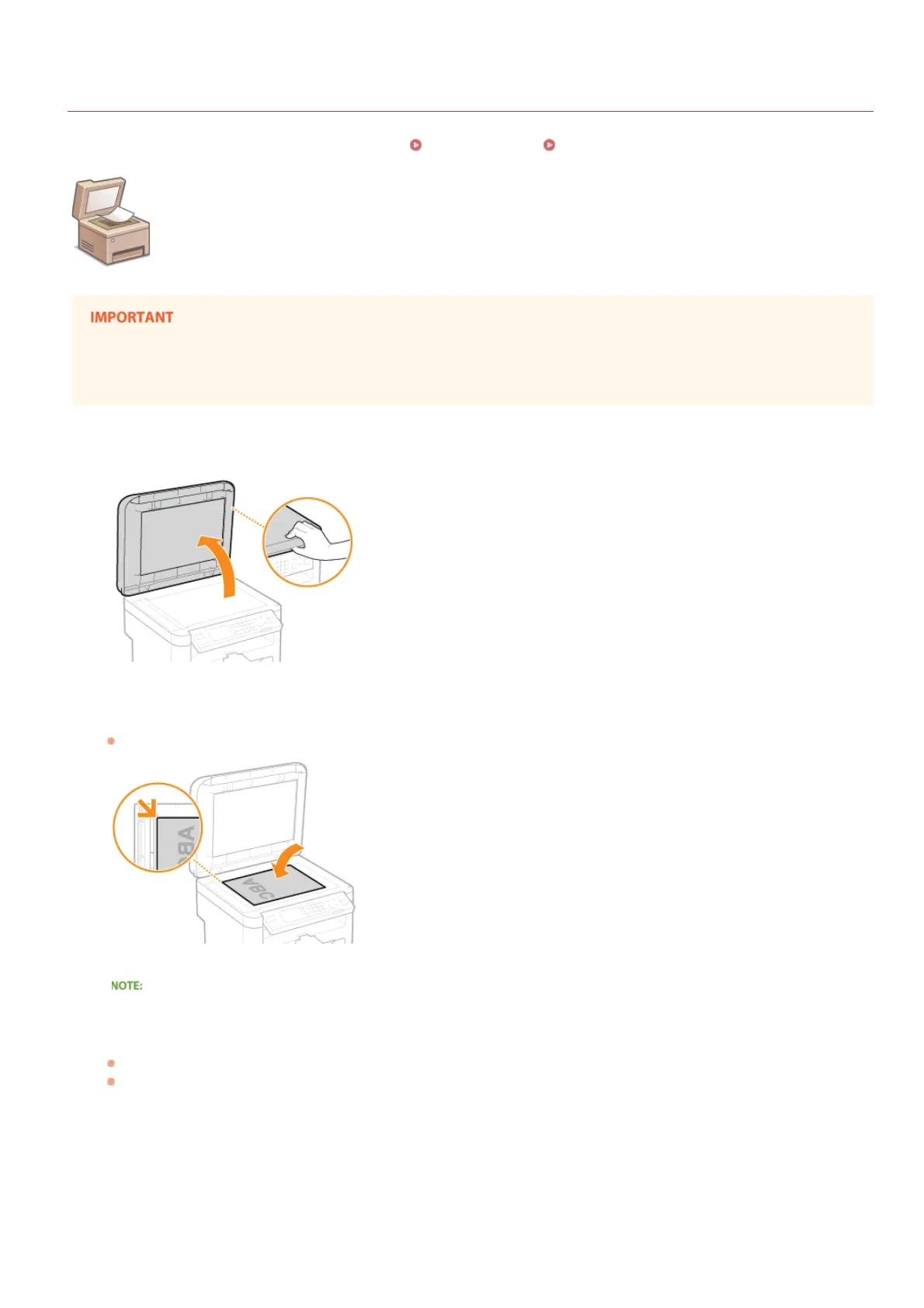 When placing documents, make sure that any glue, ink, or correction fluid on the documents has completely dried.