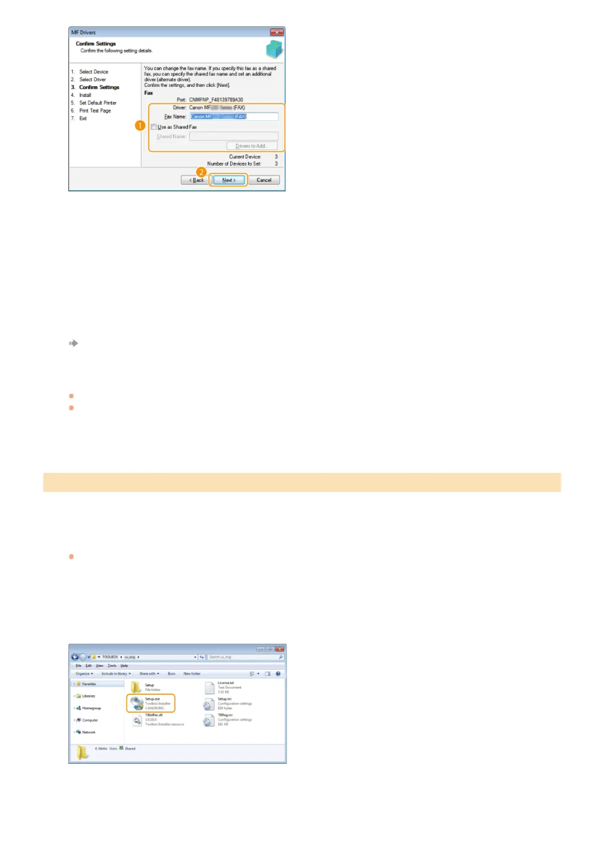 If you have selected the [Use as Shared Printer]/[Use as Shared Fax] check box, install additional drivers as necessary.