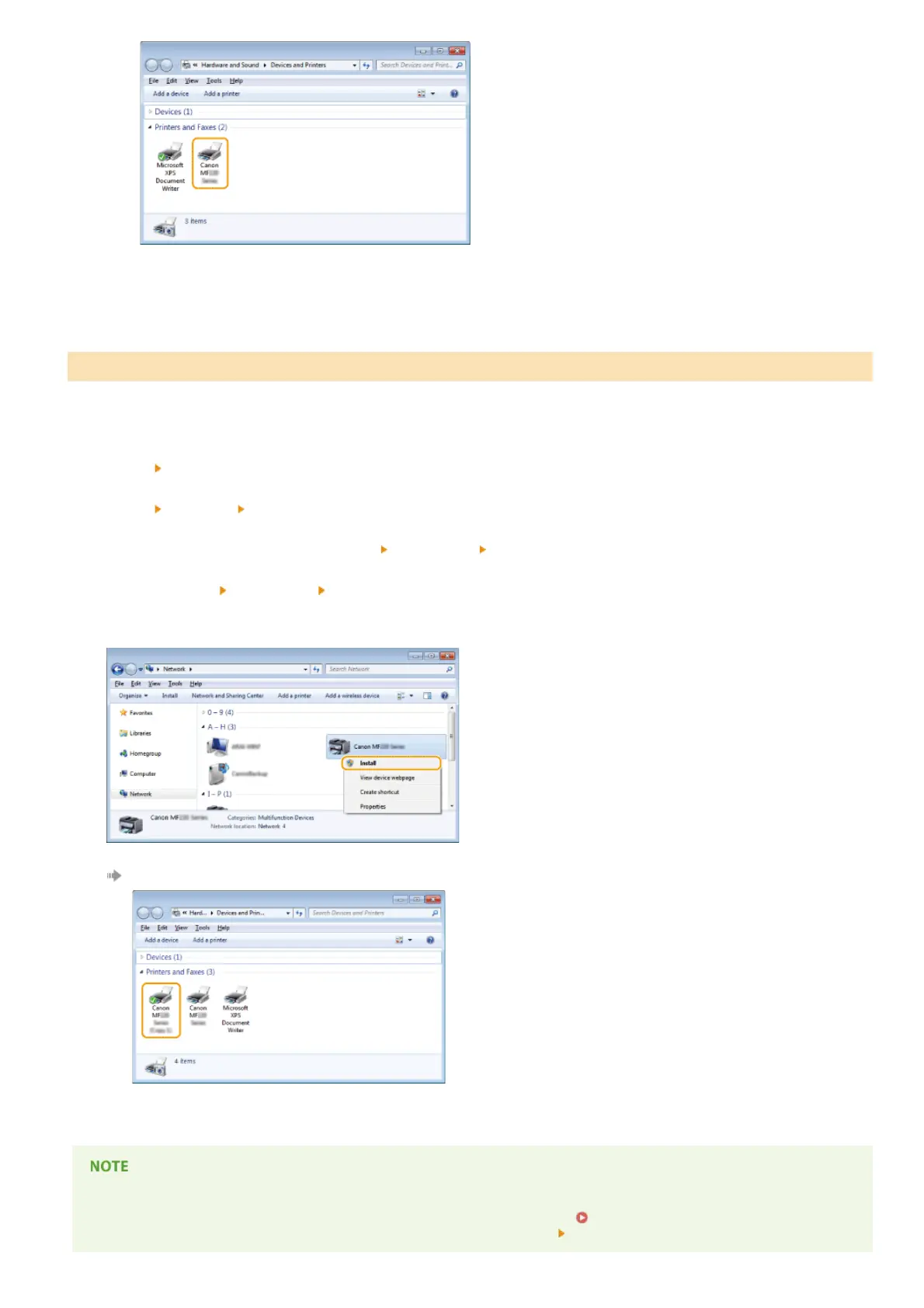 When you have finished installing the network printer, the icon added in step 13 of Installing the MF Drivers is no longer