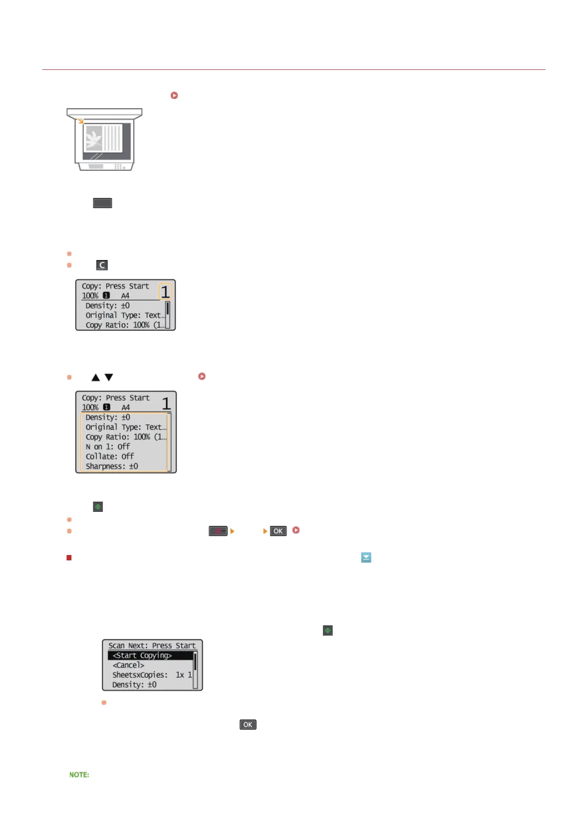 When <N on 1> is any setting other than <Off> or <Collate> is set to <On>, copy after first scanning all of the