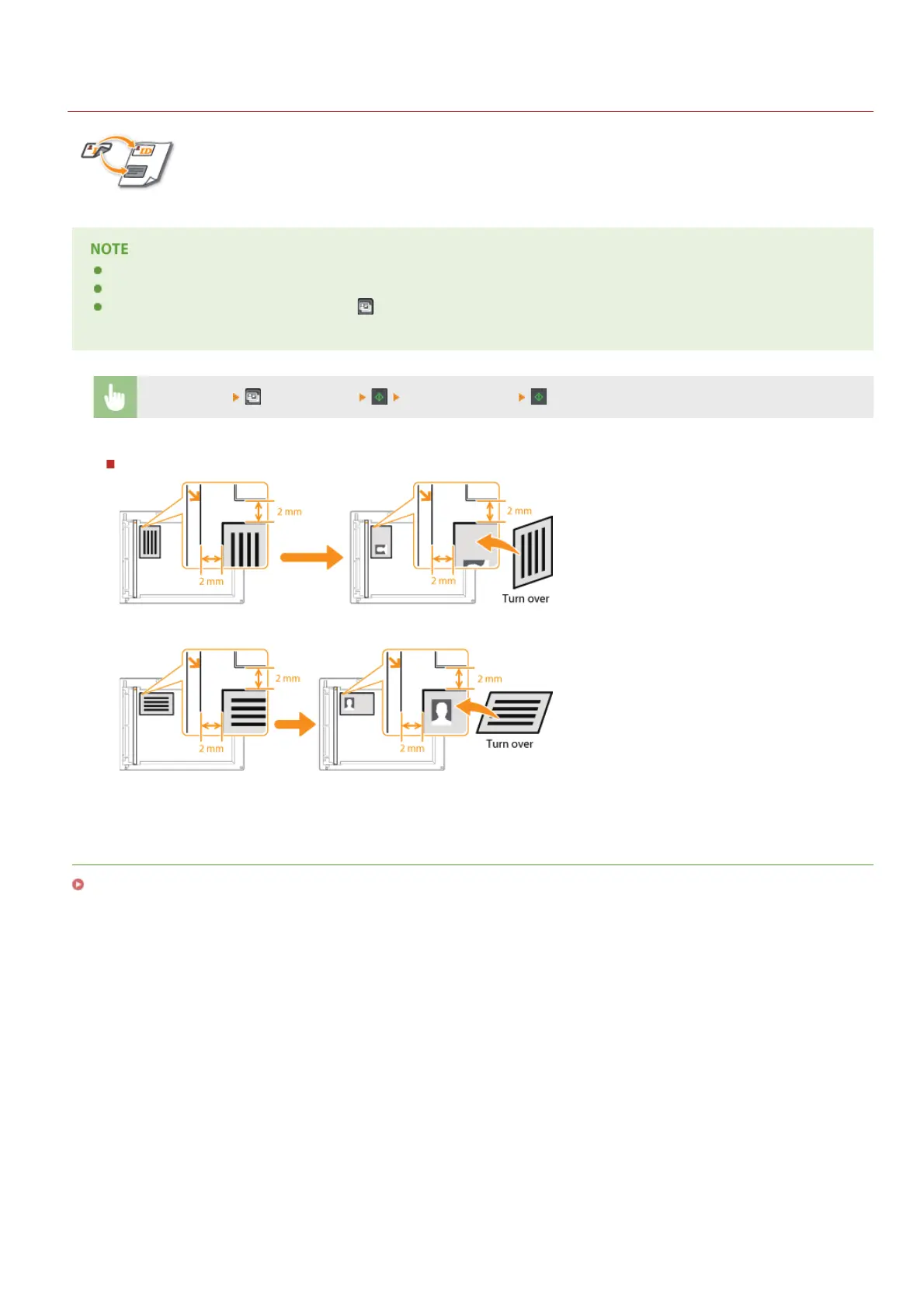 You can use <ID Card Copy> to copy the front and back sides of a card onto the same side of a page. This