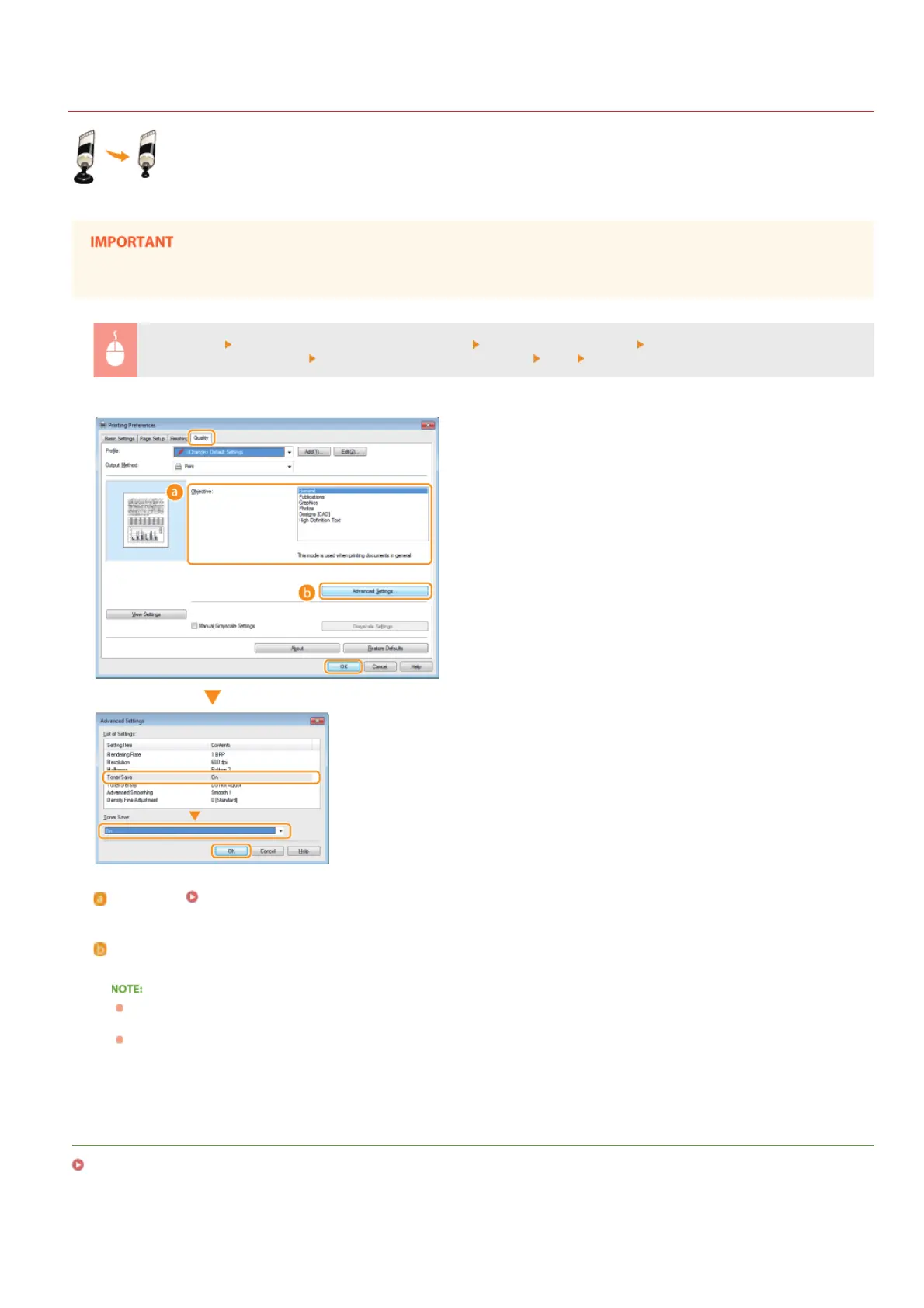 Select the document type in [Objective] Click [Advanced Settings] Select [Toner Save] in the