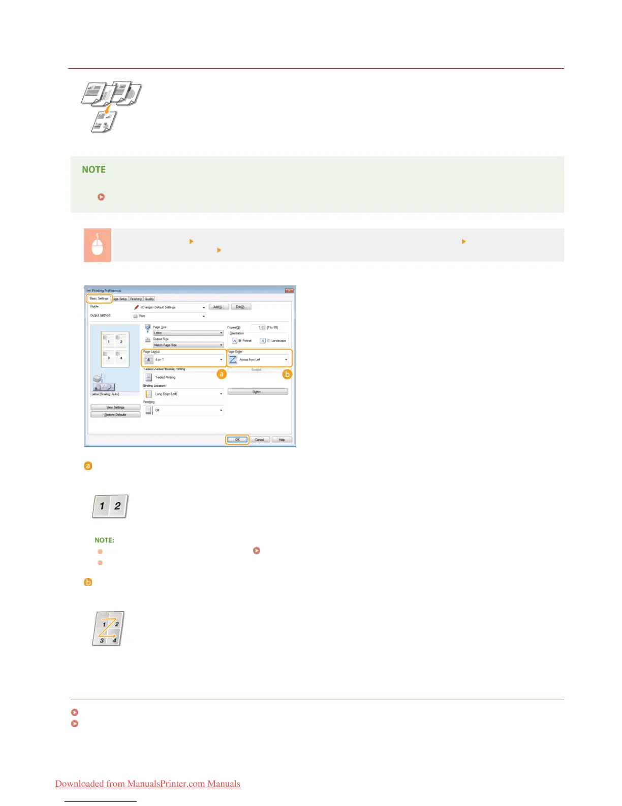 In [Page Layout], select the number of pages to print onto a single sheet In [Page Order], select