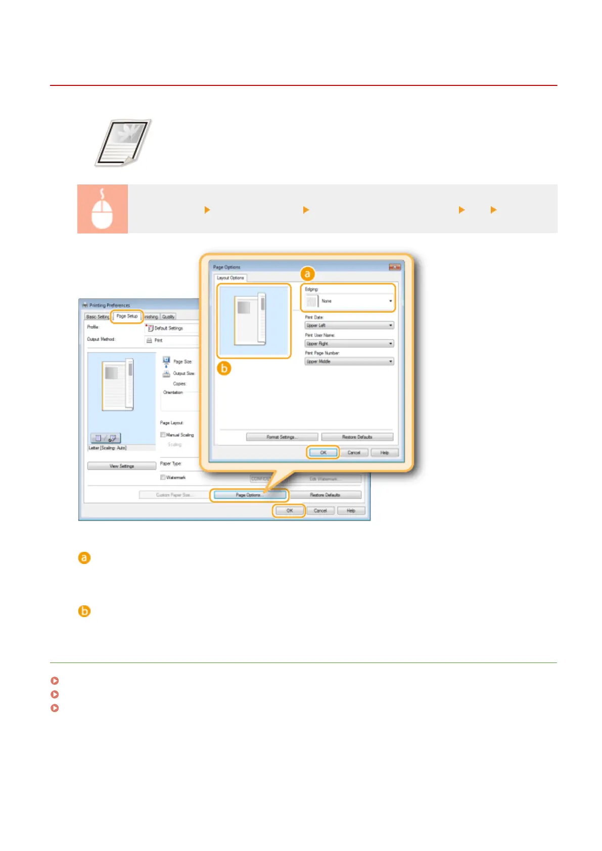 [Page Setup] tab Click [Page Options] Select the border type in [Edging] [OK] [OK]