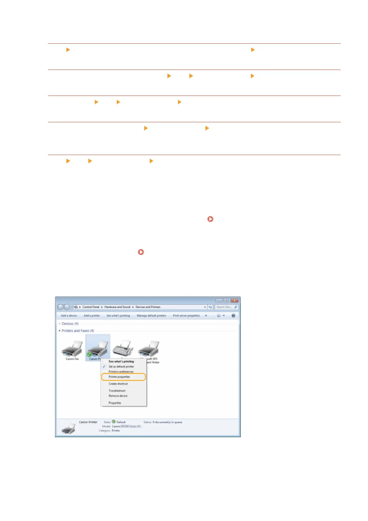Right-click the printer driver icon for this machine and click [Printer properties] or