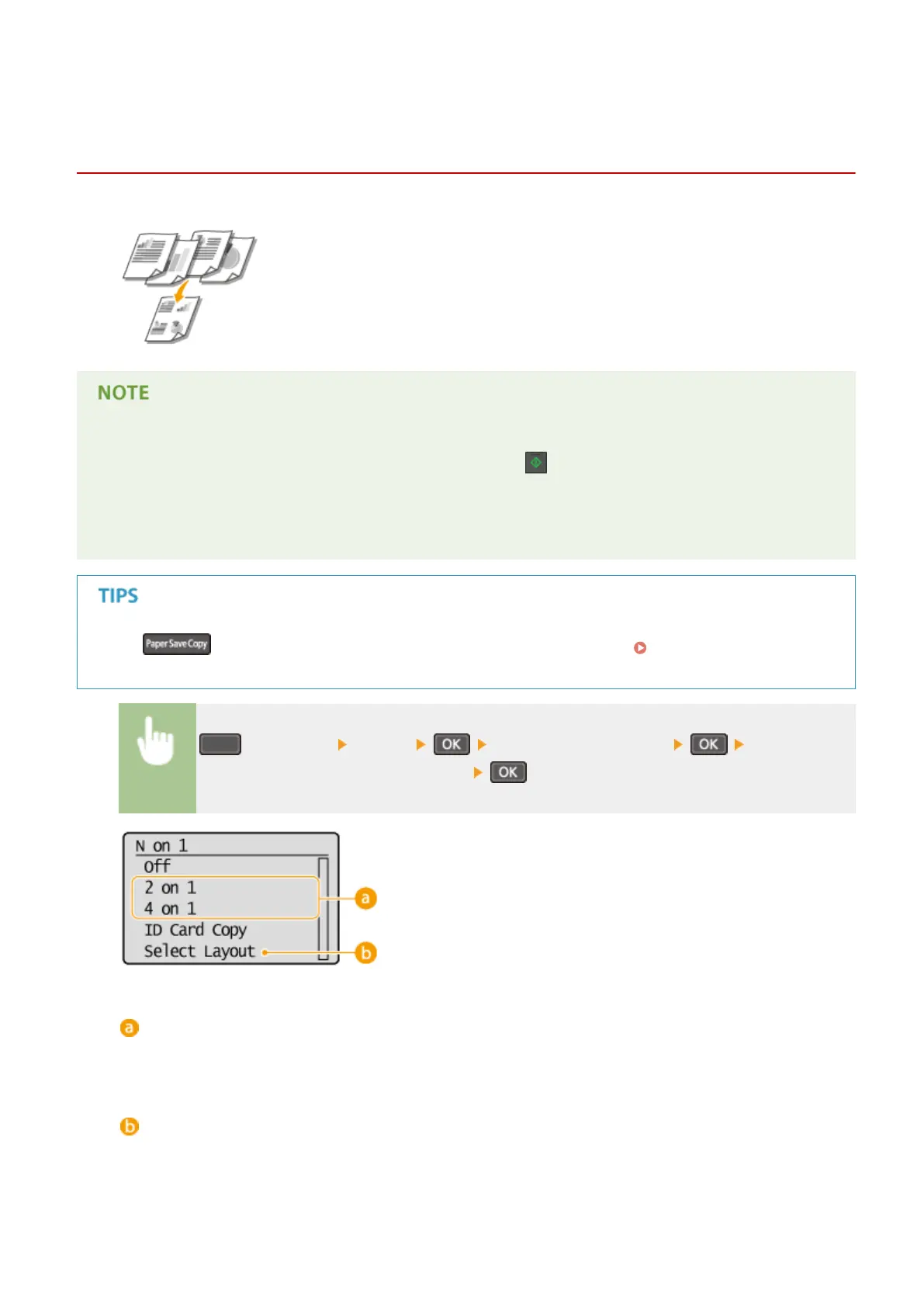 (COPY/SCAN) <N on 1> Select <2 on 1> or <4 on 1> Select the