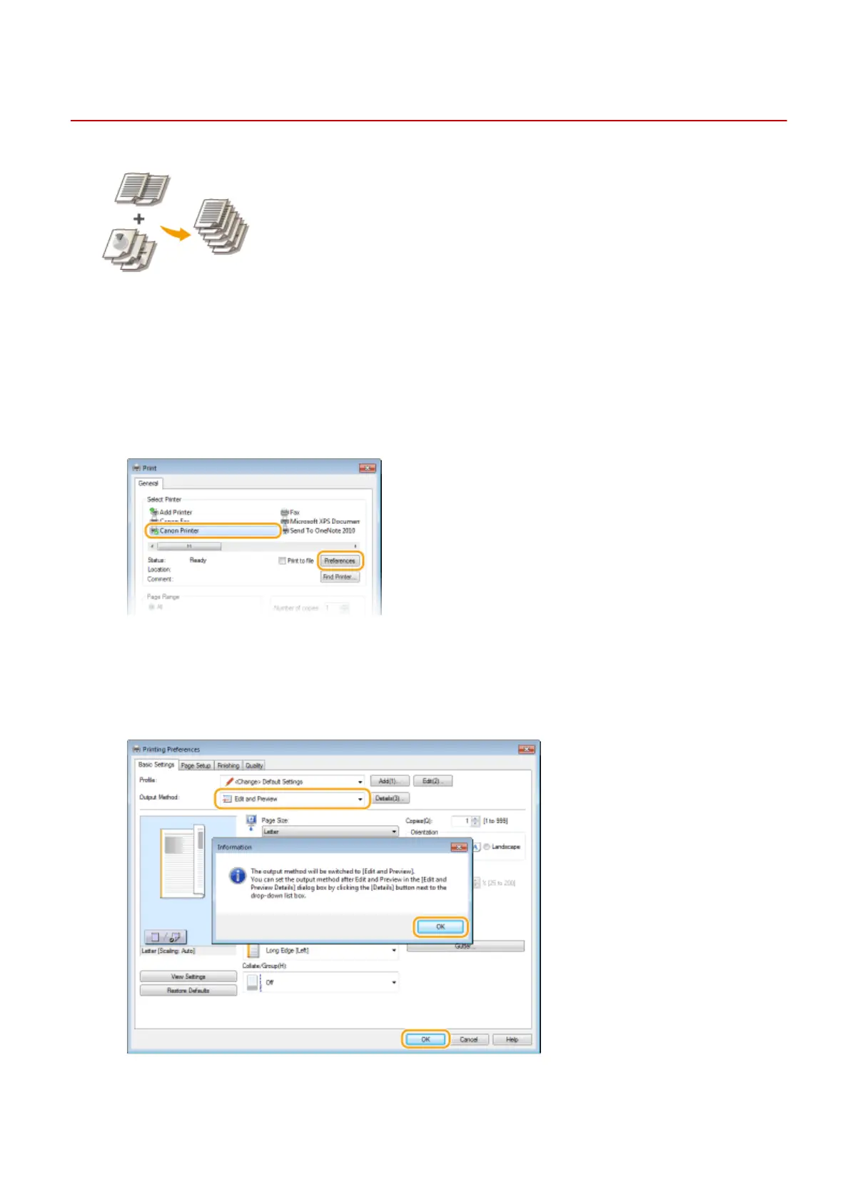 Select [Edit and Preview] in [Output Method].