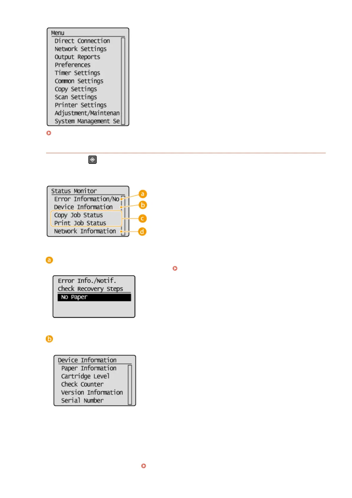 printed or copied, as well as the status of the machine (amount remaining in the toner cartridge, etc.) and the