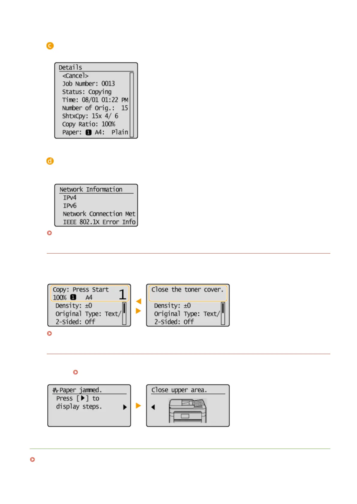 ent status of the selected item. The <Copy Job Status> screen is shown below as an example.