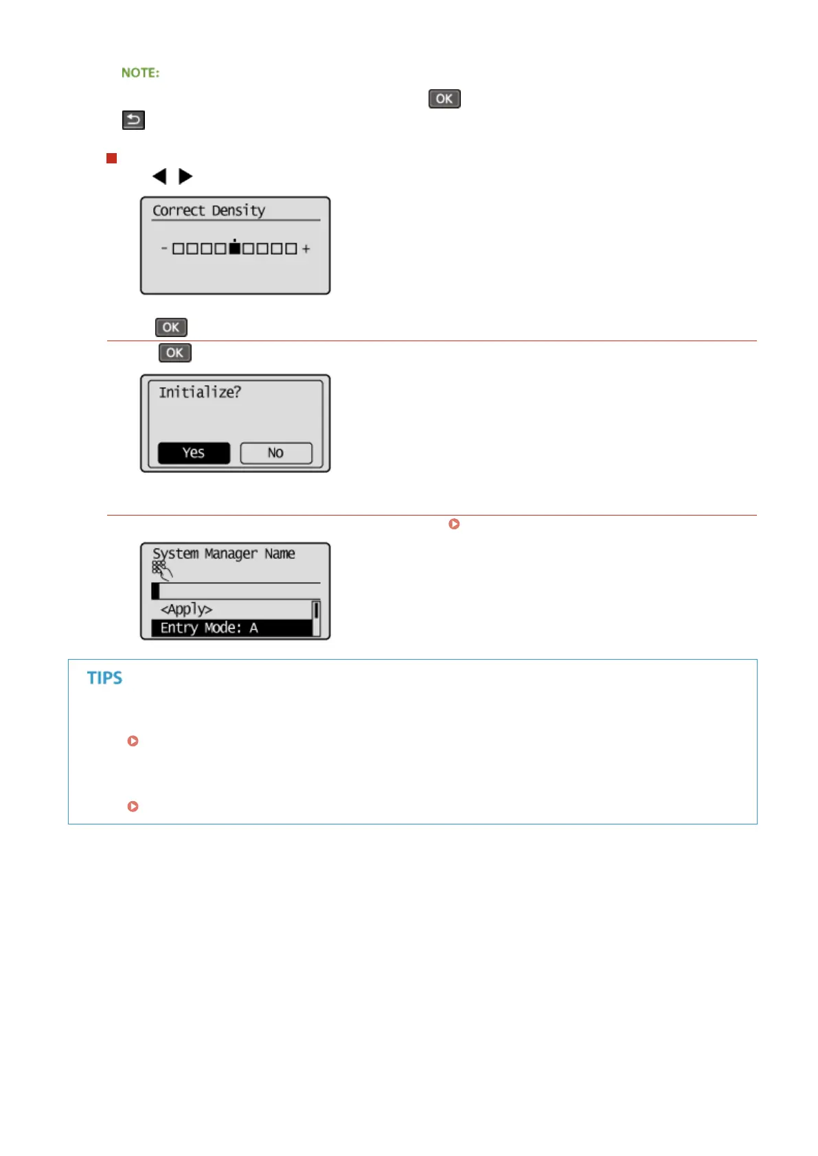 You can also proceed to the next screen by pressing , and return to the previous screen by pressing