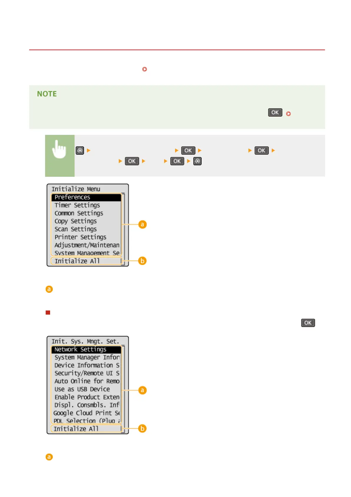<System Management Settings> <Initialize Menu> Select the item you
