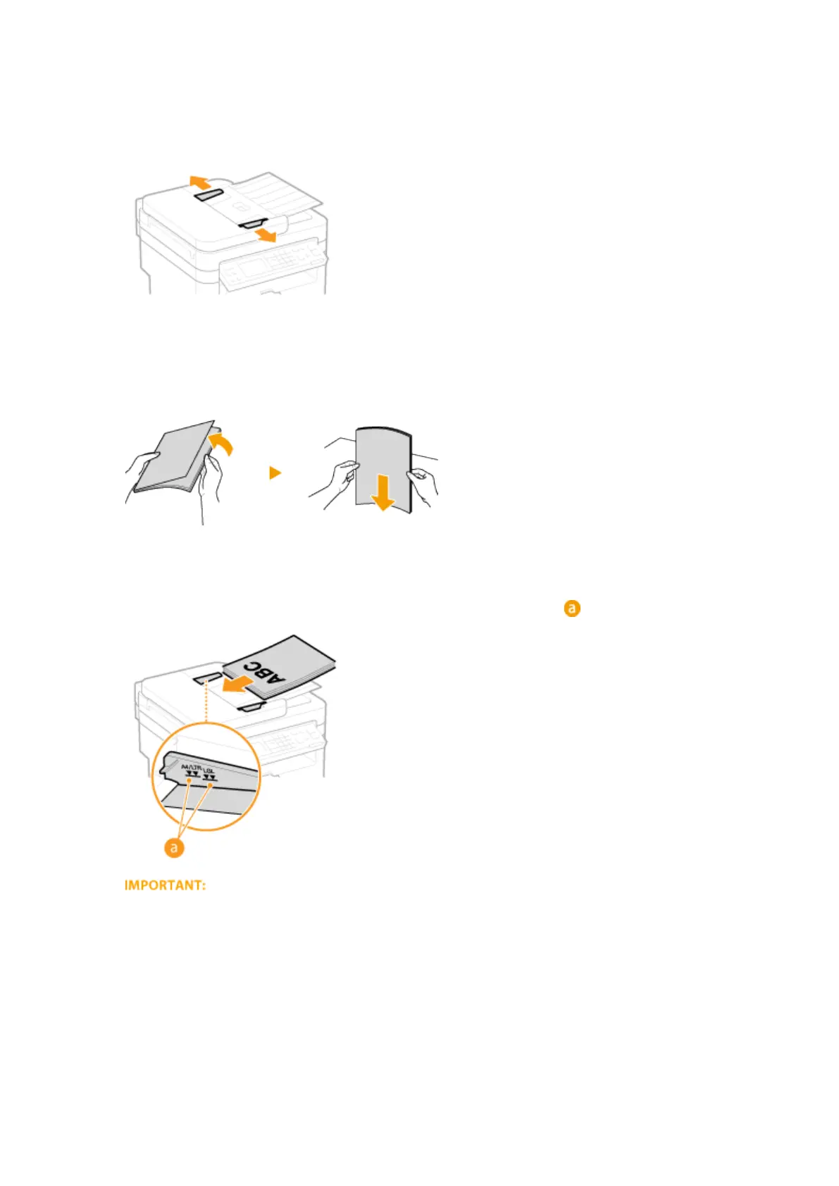 to 35 sheets can be loaded at a time. If 35 or more sheets are loaded, scanning may stop or a paper