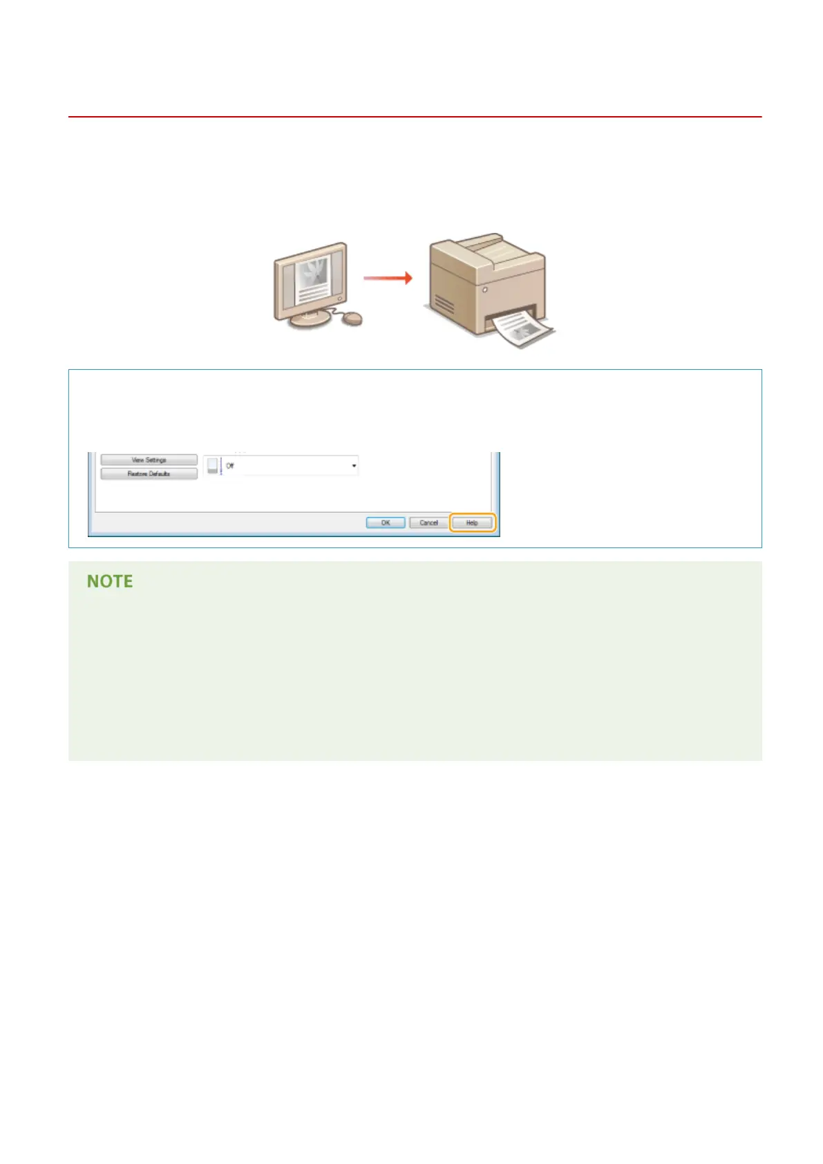 Clicking [Help] on the printer driver screen displays the Help screen. On this screen, you can see the detailed