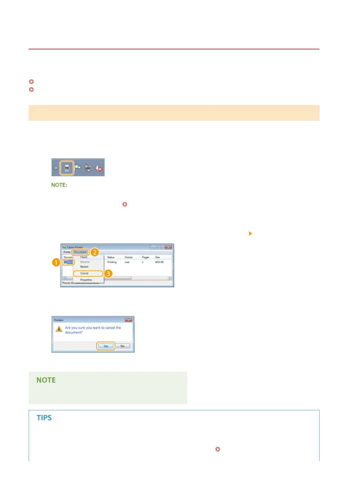 ➠ Printing of the selected document is canceled.