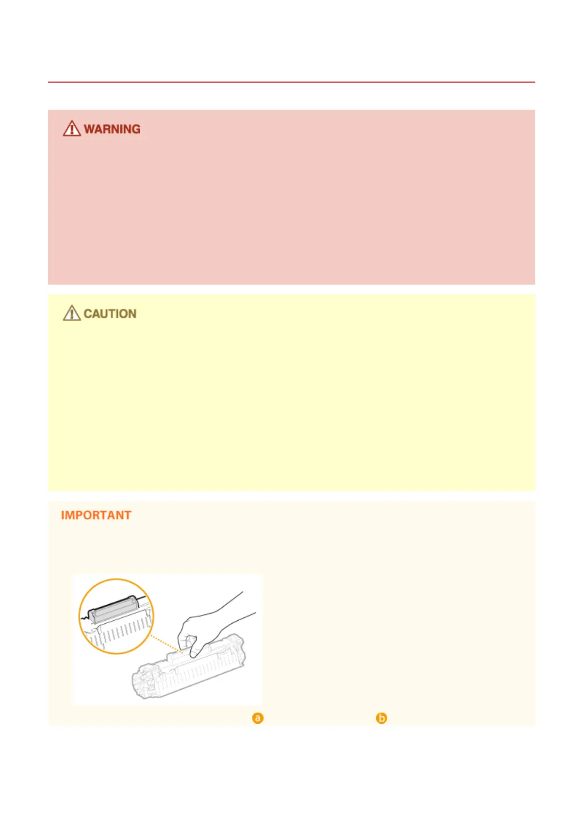 ● Use caution not to inhale any toner. If you should inhale toner, consult a physician immediately.