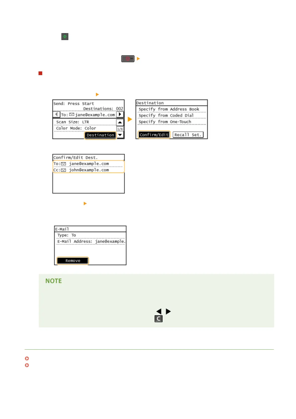 Before tapping <Destination> in step 1, you can tap / to toggle the destinations you specied.