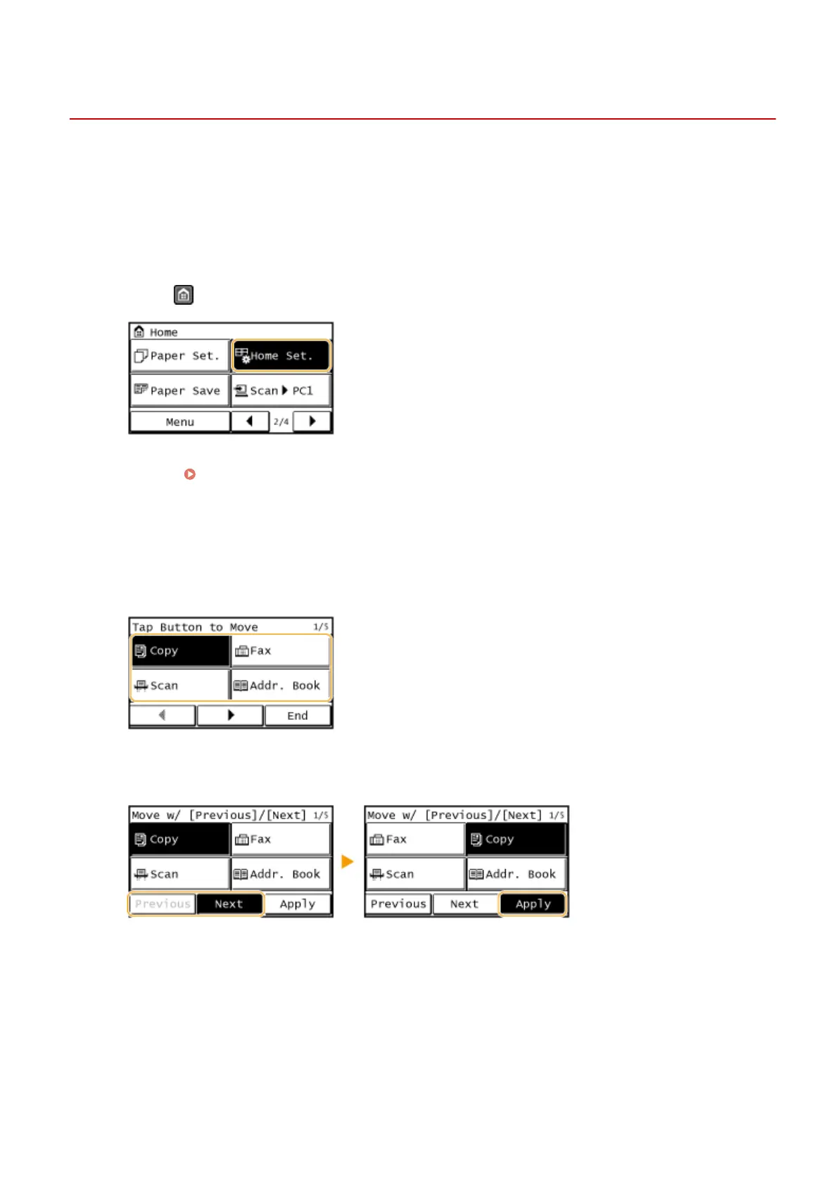 Tap <Previous> or <Next> to move the button, and tap <Apply>.