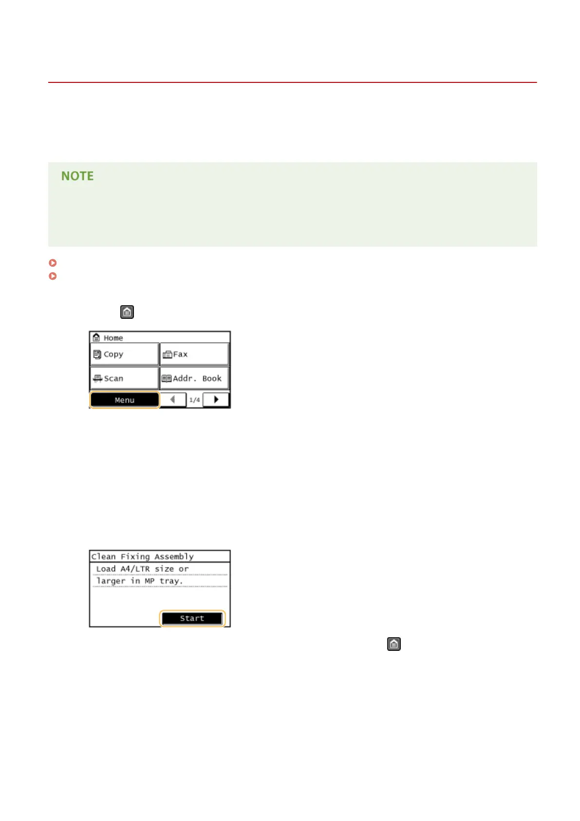Tap <Clean Fixing Assembly>.