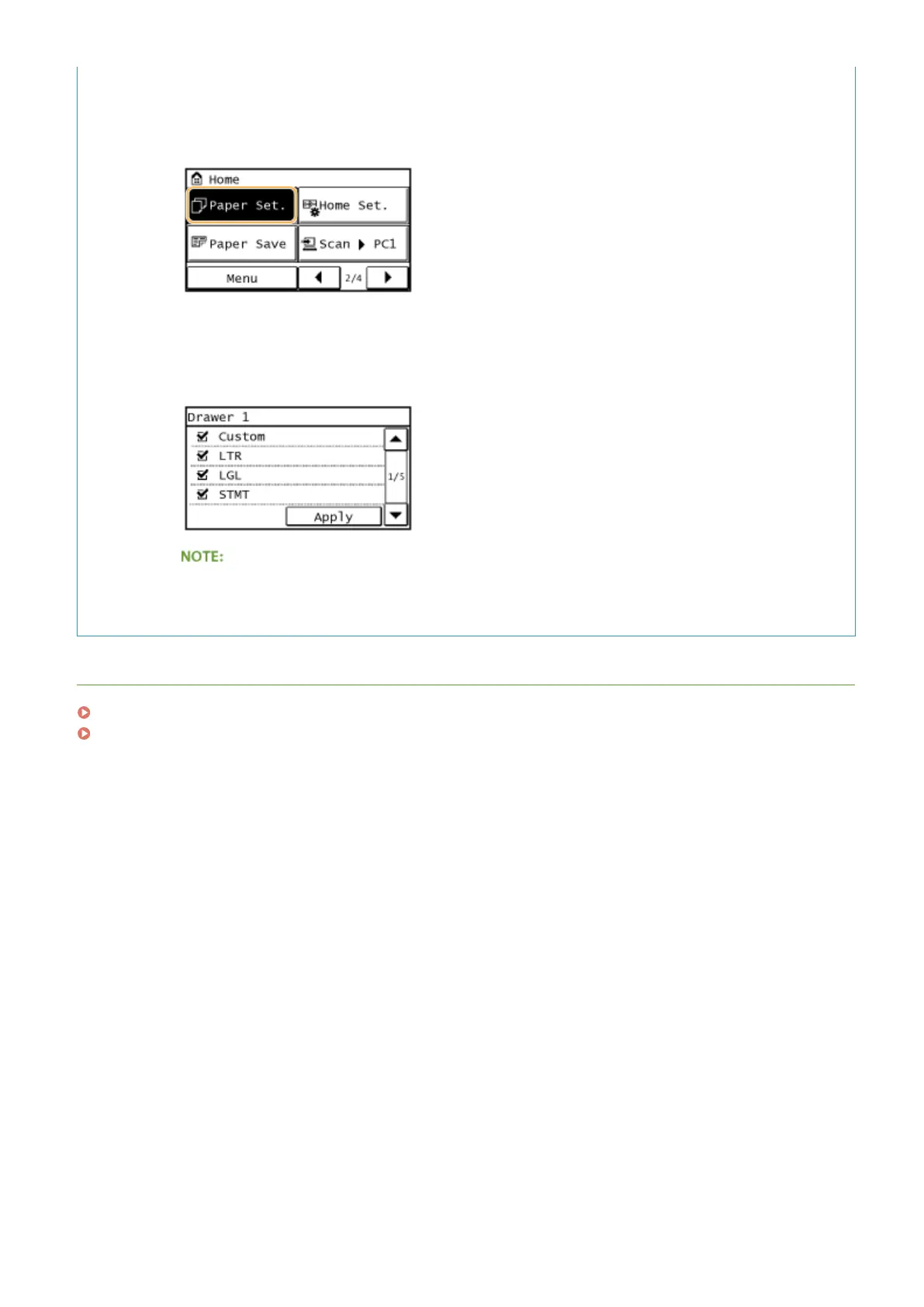 Uncheckmarked paper sizes are displayed in the <Paper Size (Other Sz.)> screen.
