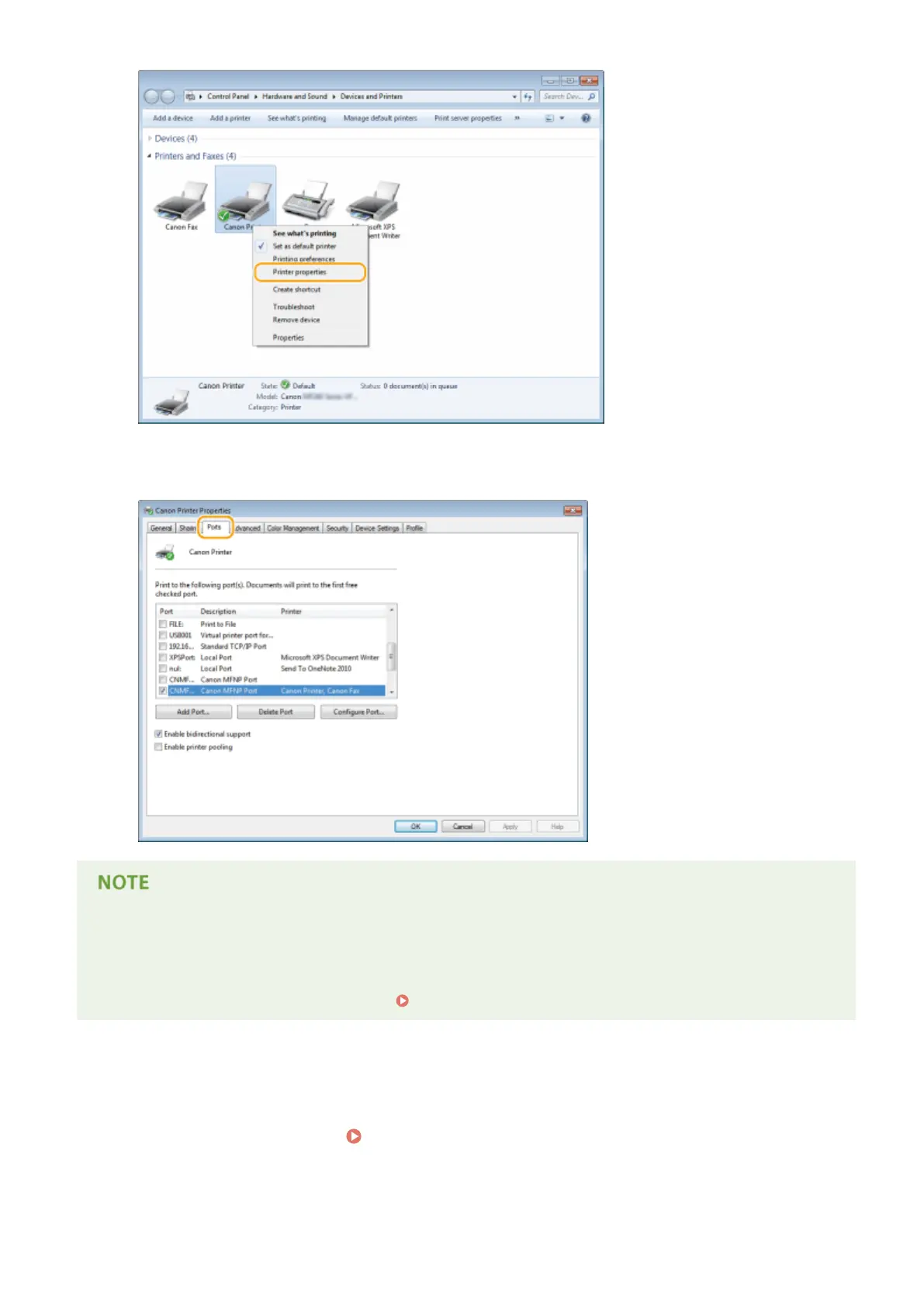 TCP/IP Port], you need to add a new port. Conguring Printer Ports(P. 351)