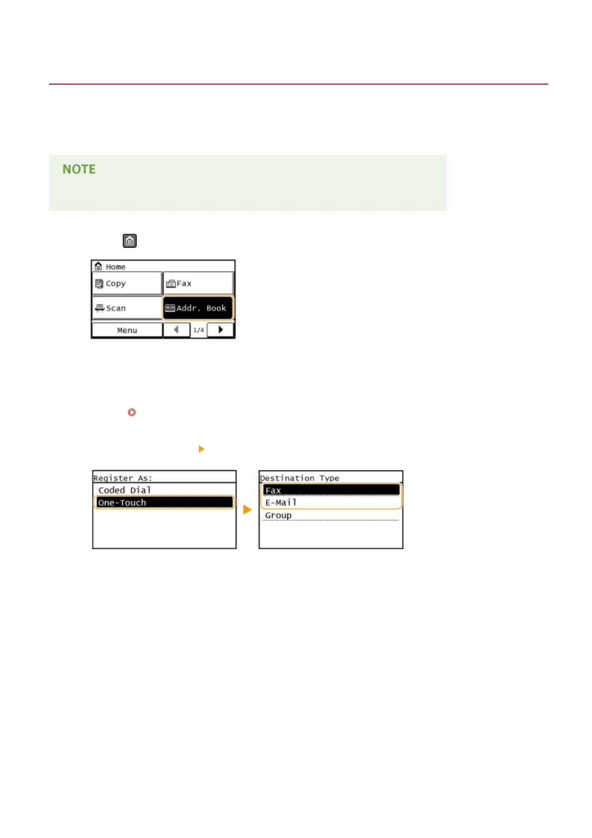 by tapping One-Touch buttons in the <Home> Screen. You can edit or delete destinations that you have registered. You