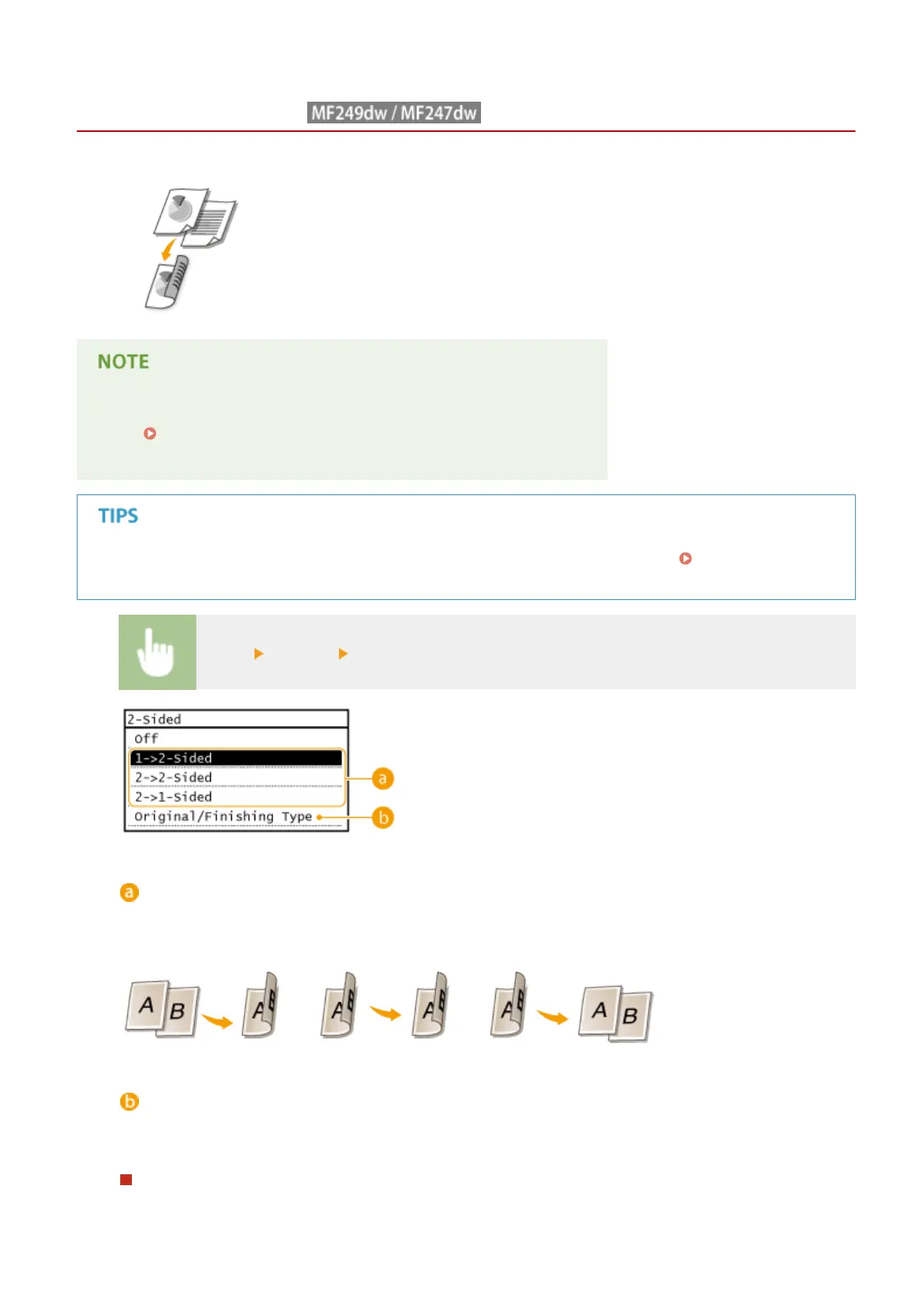 The illustration below shows the types of 2-sided copying.