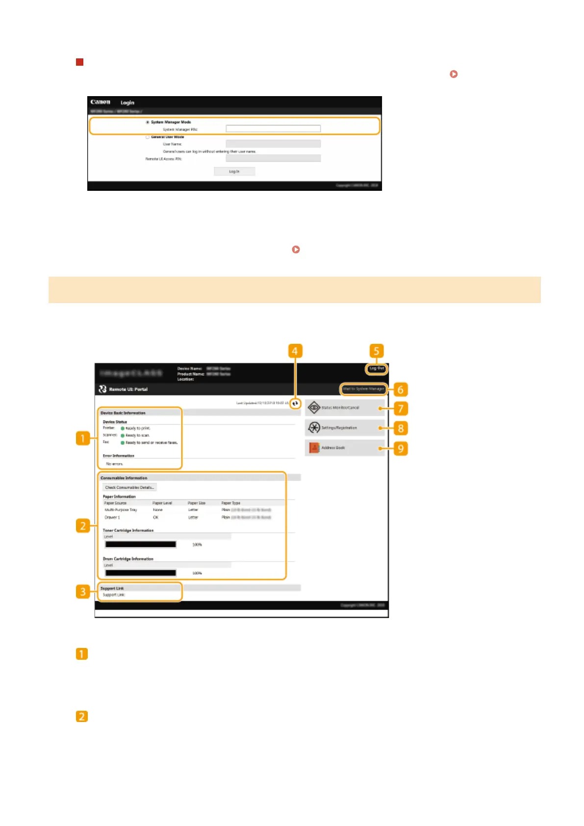When you log in to the Remote UI, the follo